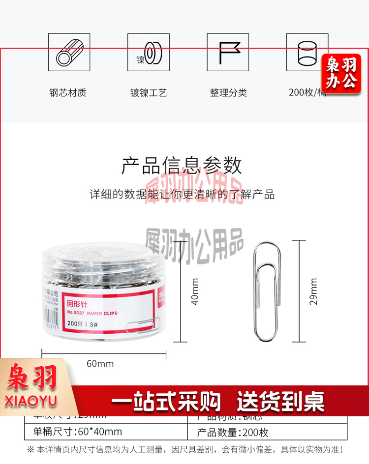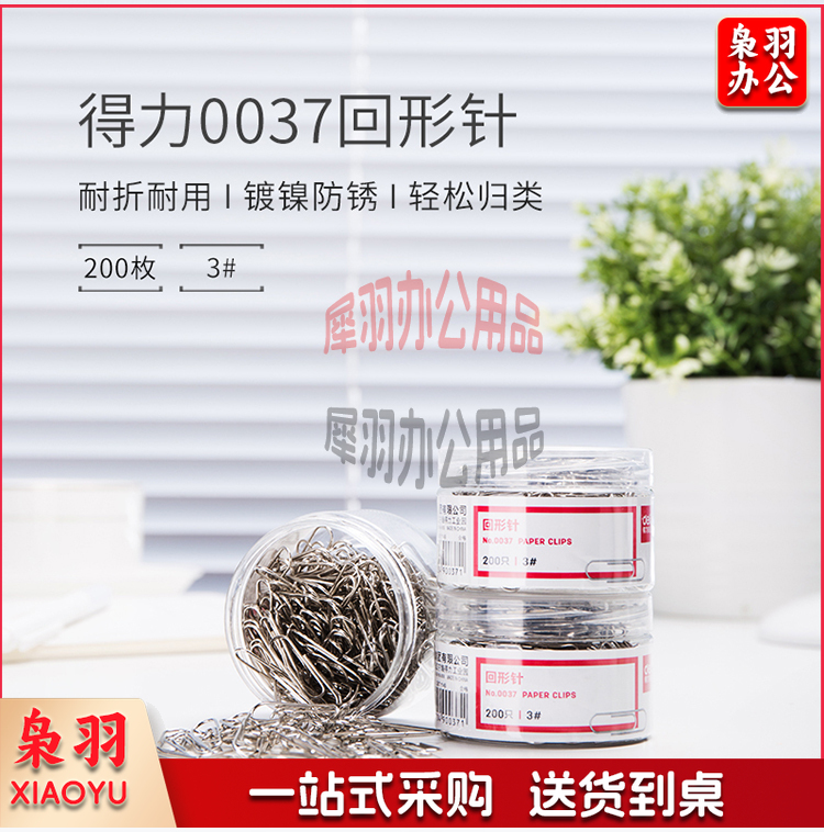得力(deli)29mm镀镍回形针 3#金属曲别针 200枚/筒 0037(48盒装)