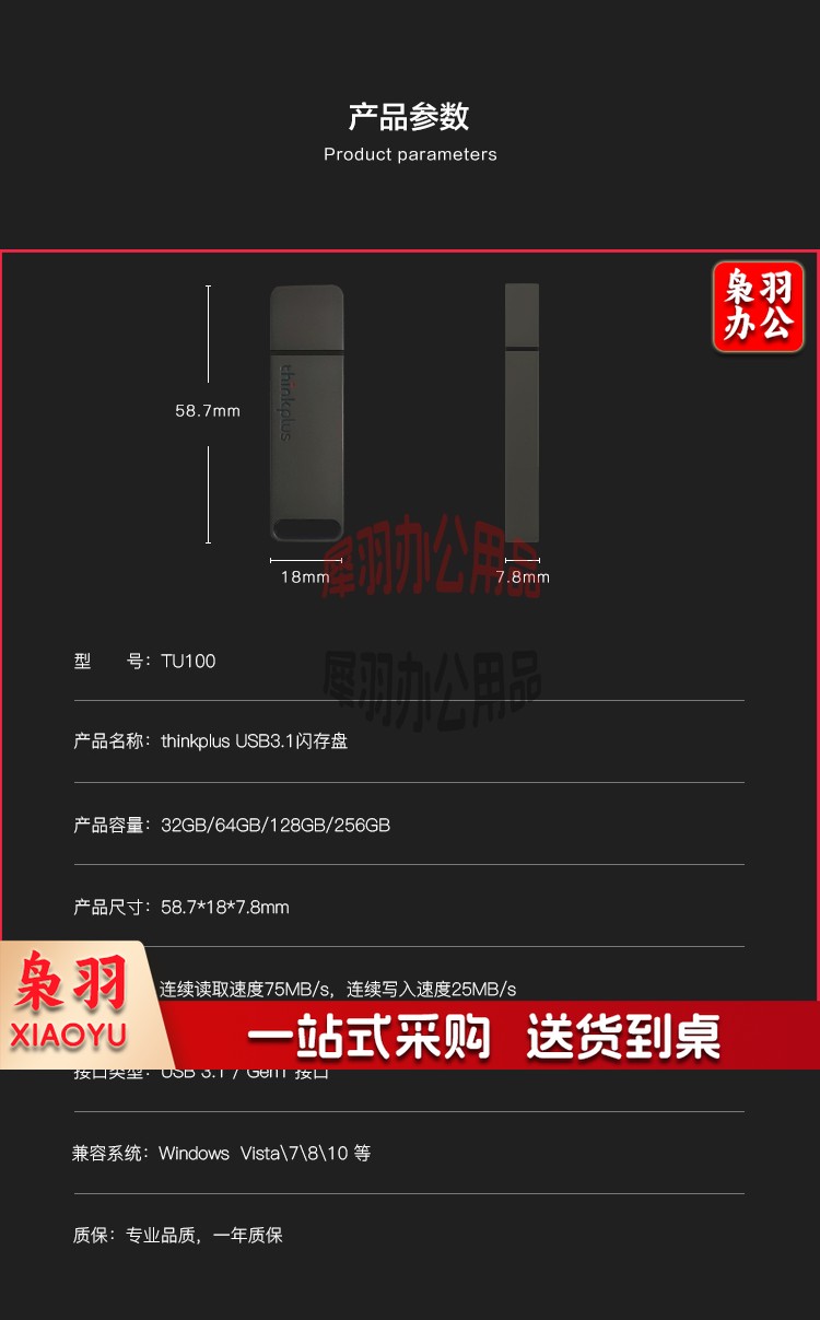 联想(thinkplus)USB3.1高速传输U盘 移动闪存优盘 金属商务U盘 大容量电脑优盘 TU100金属优盘 32G