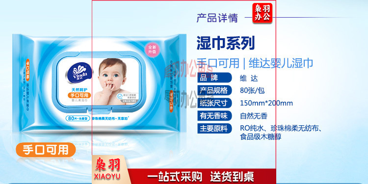 维达(Vinda)婴儿湿巾VW2004手口湿纸巾80片/包 抽取式湿纸巾 5包
