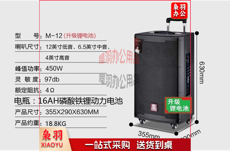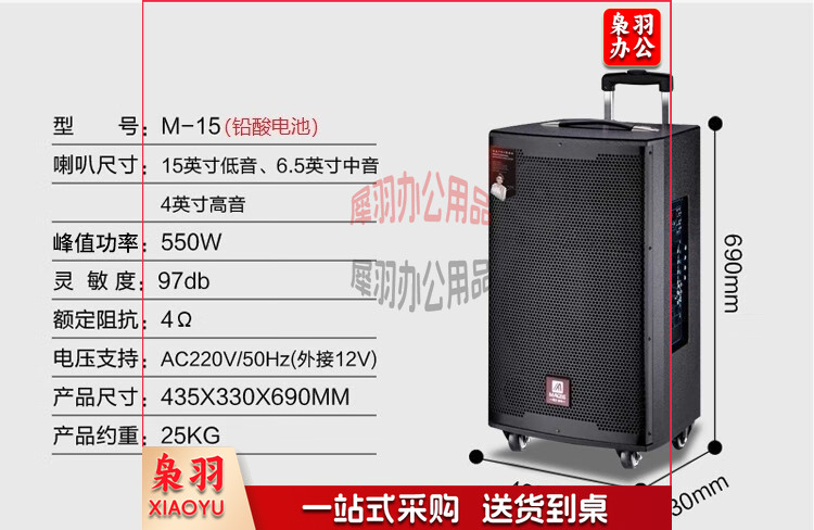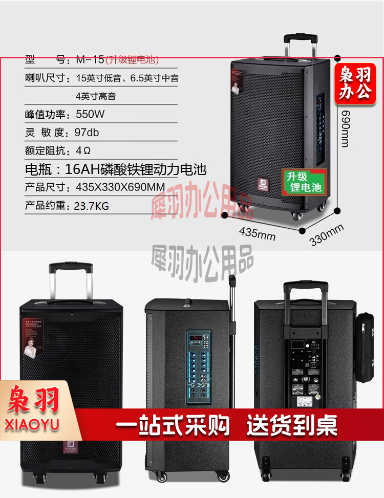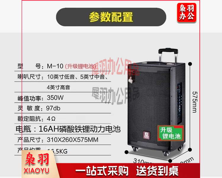 曼龙(MALONE)M-10便携拉杆音响大功率重低音 锂电池电池+2支话筒