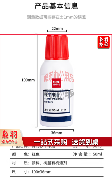 得力9875秒干印油50ml(红)(12瓶/盒)
