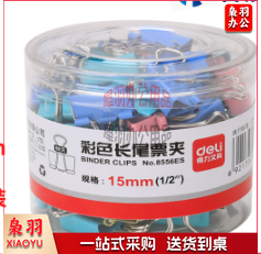 得力8556ES彩色长尾夹燕尾夹凤尾夹15mm 6#票据夹 凤燕尾夹 铁夹子 桶装60只