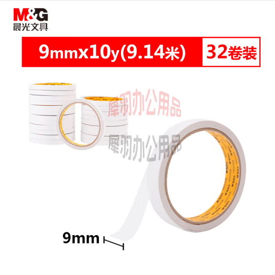 晨光(M&G)文具双面胶 高粘性棉纸胶带 学生/办公通用双面胶带9mm*10y(9.14m/卷) 32卷装AJD97348