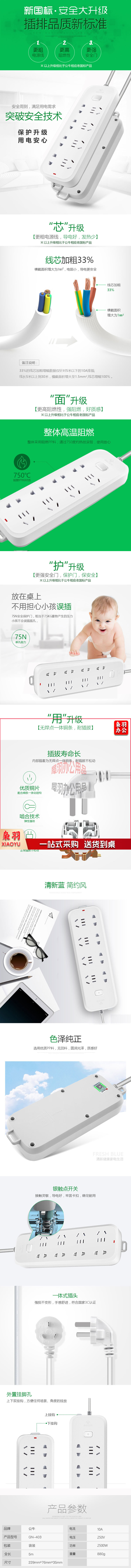 公牛(BULL)GN-403 多位插座10A250V 3米