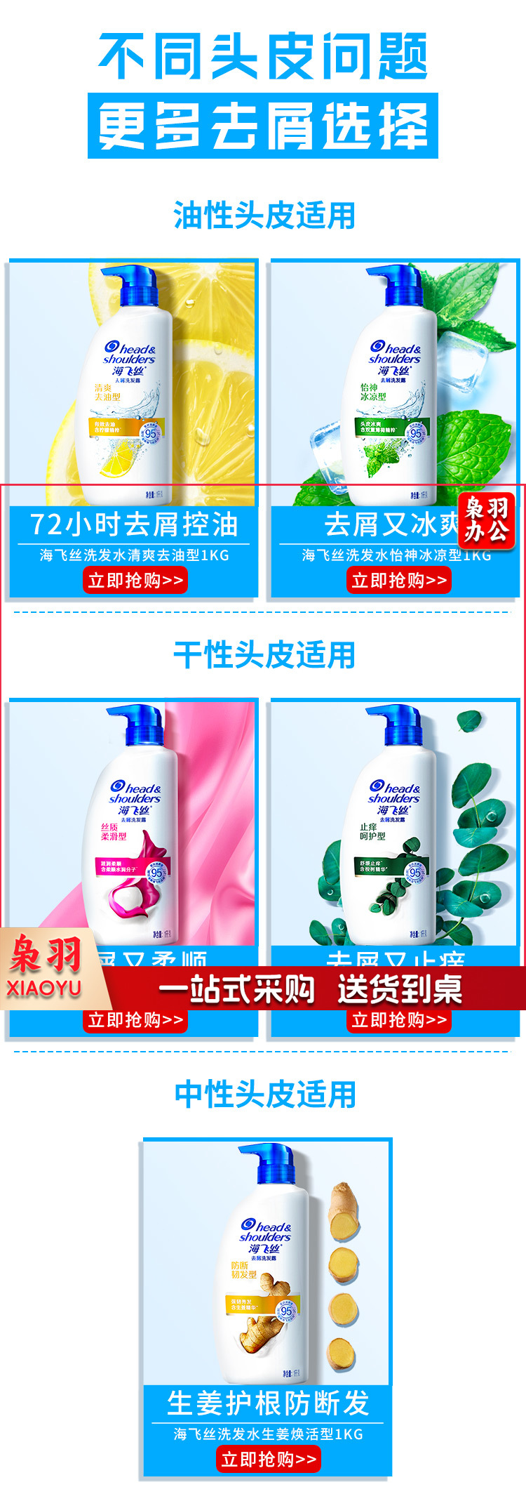 海飞丝 生姜洗发水 护根防断发1KG 单位:瓶