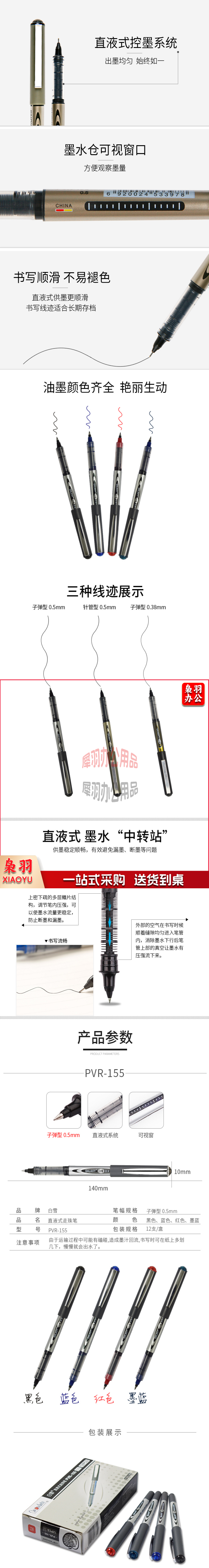 白雪 PVR-155 直液式走珠笔 子弹型0.5 红色 12支/盒 单位:盒