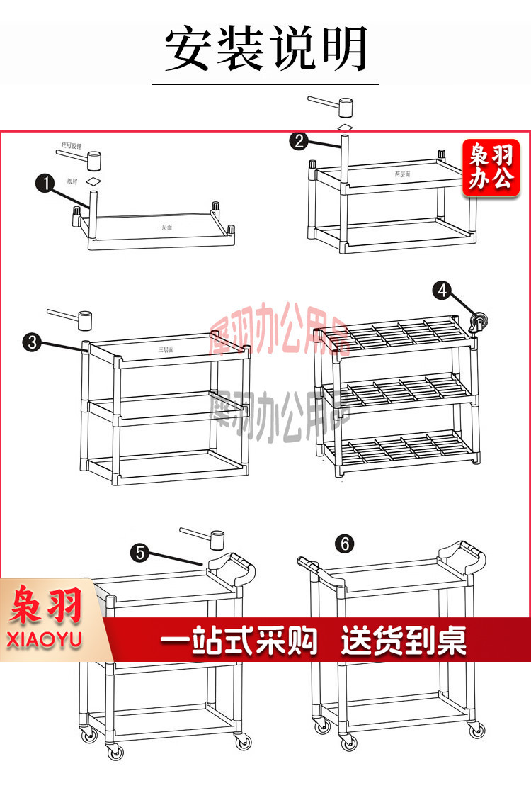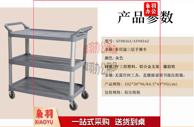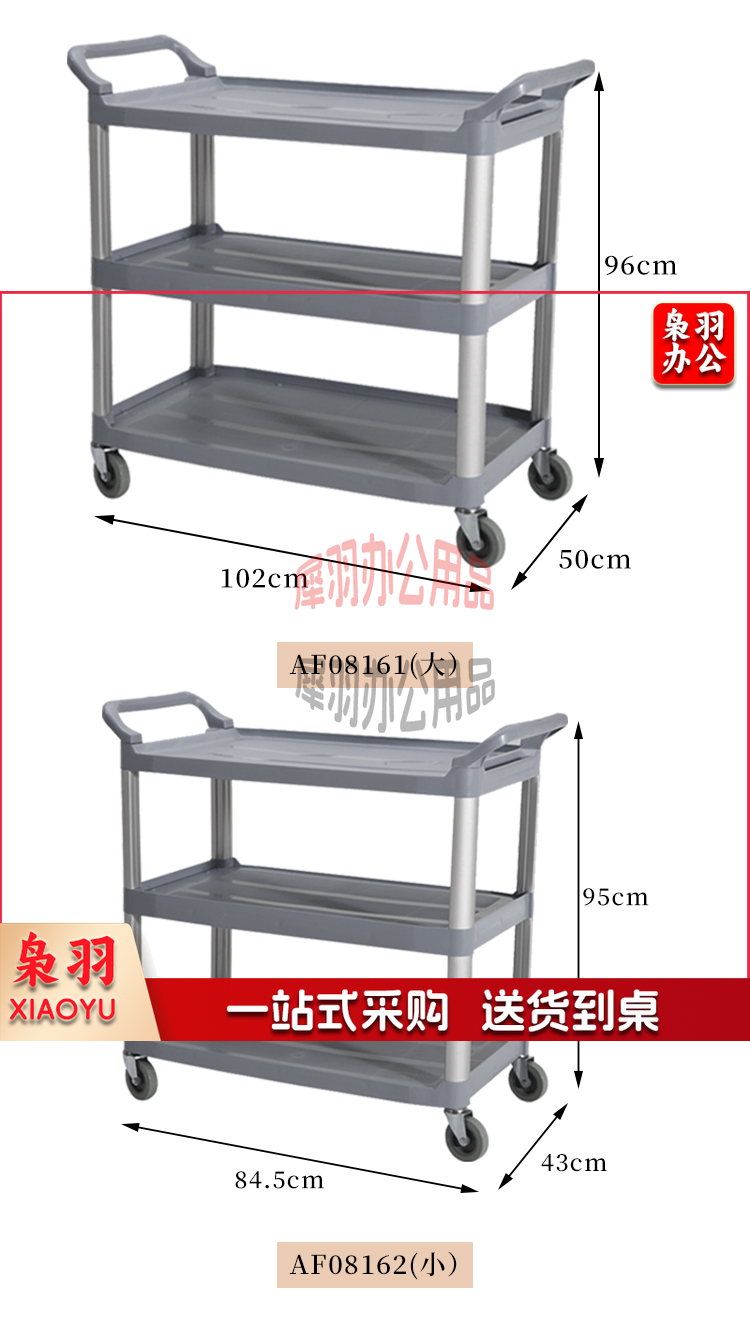 白云清洁 AF08162 酒店手推车清洁车收餐车小号多功能三层推车