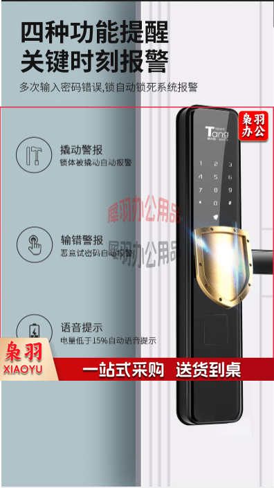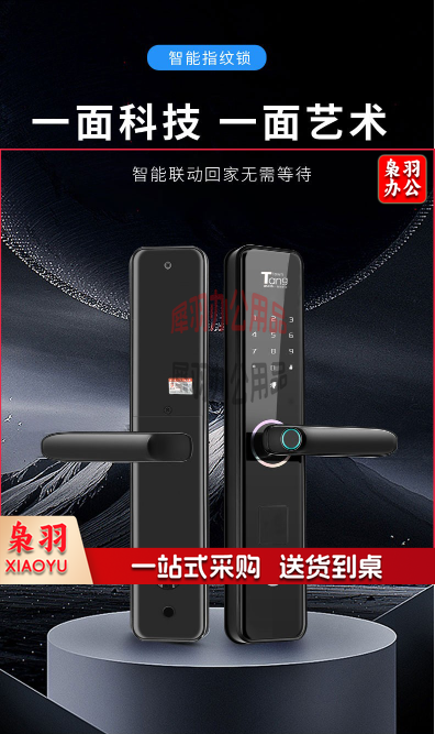 唐人街 K7-1 一握即开智能门锁电子锁指纹锁密码刷卡锁手机小程序科技黑家用公寓防盗门锁 适用于超厚门框超厚门锁 科技黑 免费拆旧上门安装