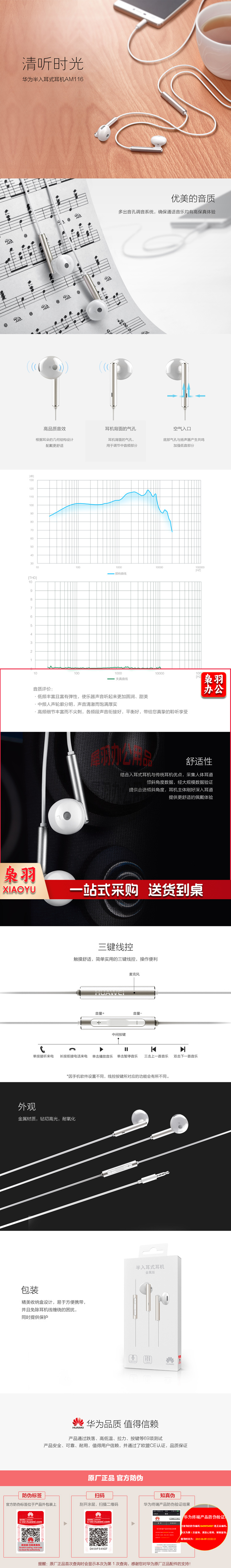 华为(HUAWEI) AM116 原装耳机/半入耳式耳机/三键线控/带麦克风/原装手机耳机 单位:对 hysm-230413090455