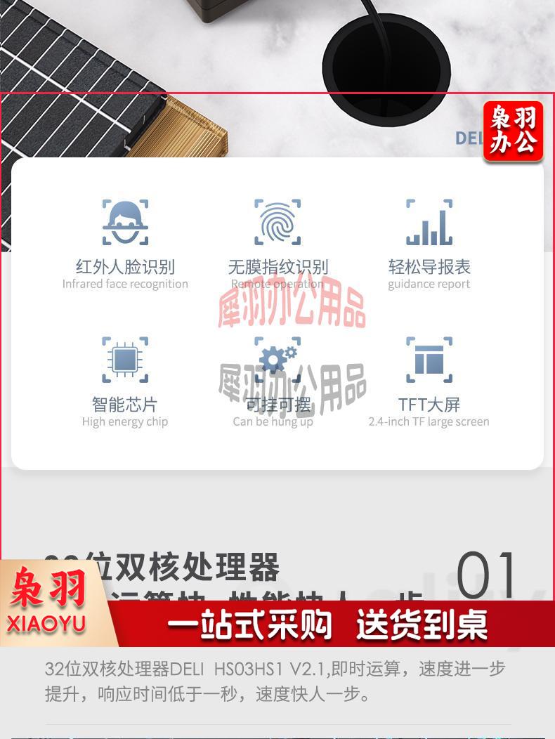 得力(deli) T999S 指纹人脸考勤机打卡机 200张人脸/1000枚指纹/10万条存储 商用办公