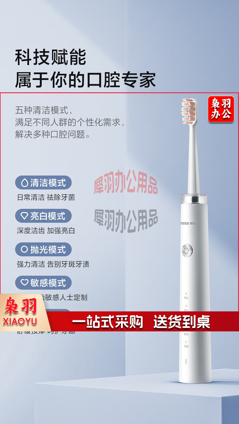 电动牙刷智能牙刷电动情侣成人学生家用声波震动牙刷5种净齿模式礼物情侣款PT1701皓月白