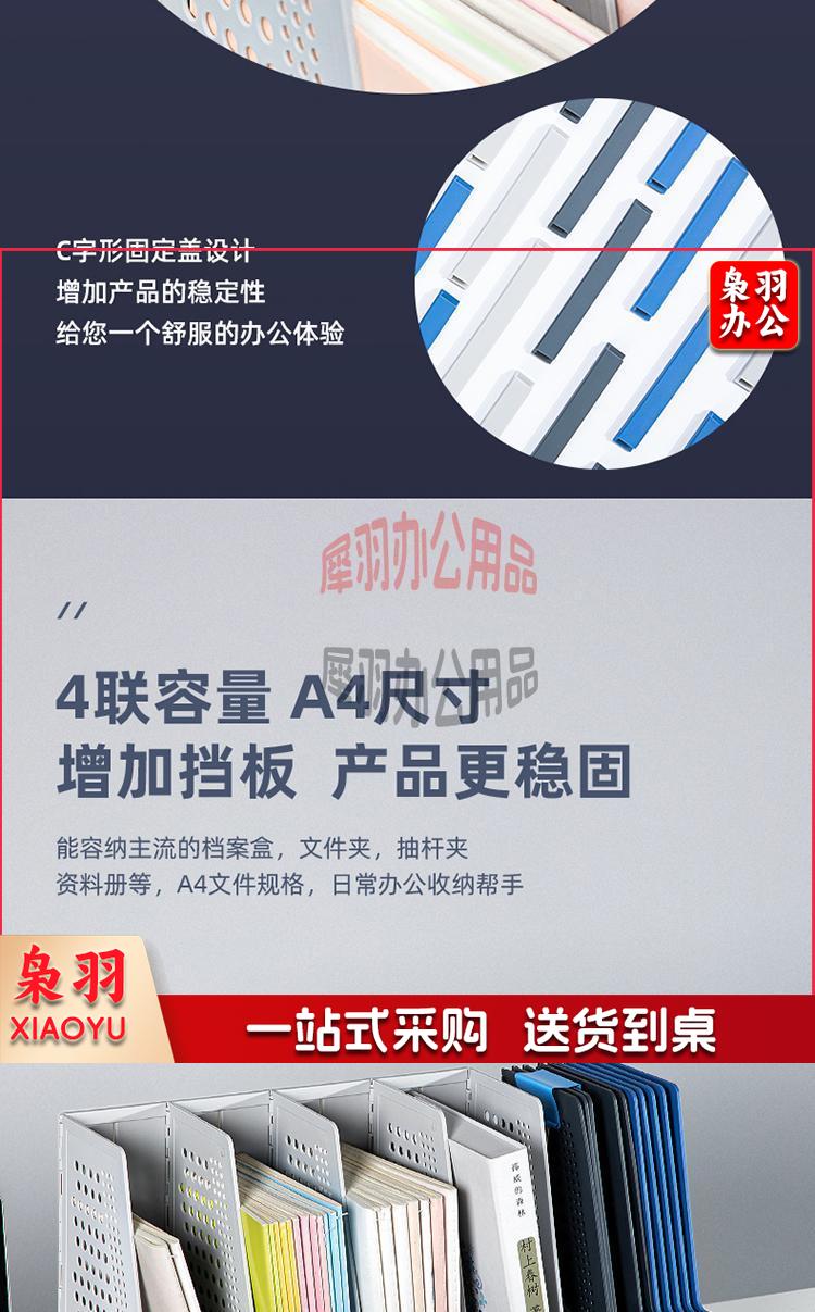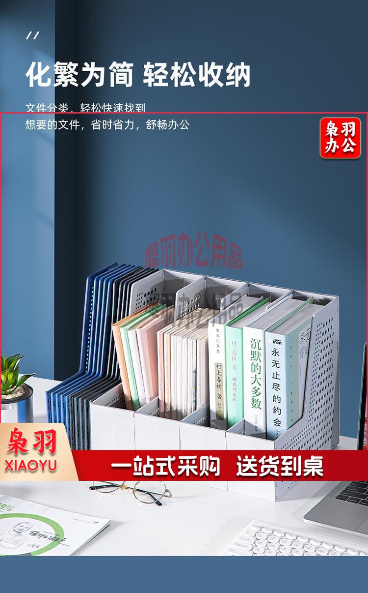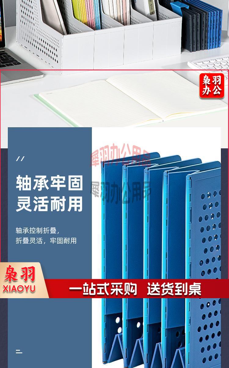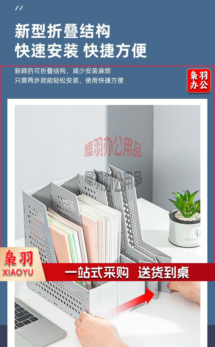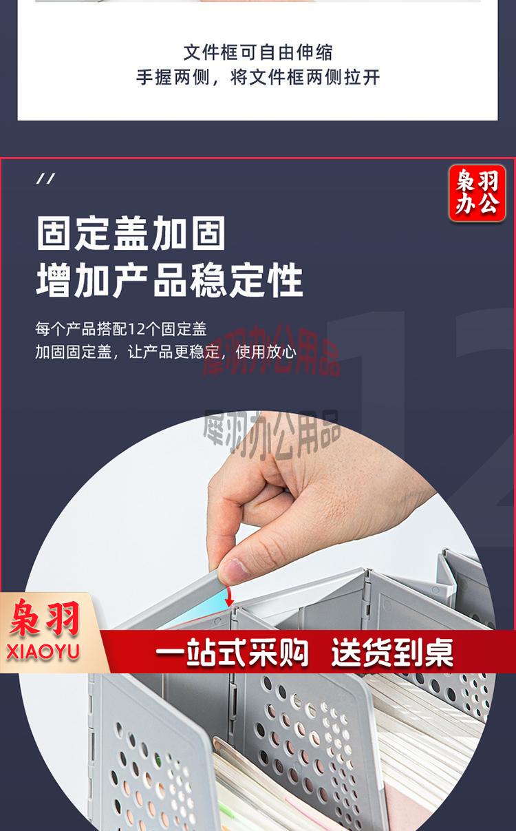 得力(deli)新型折叠四联文件框文件架 办公室桌面多层资料架子 自由伸缩 浅灰79006
