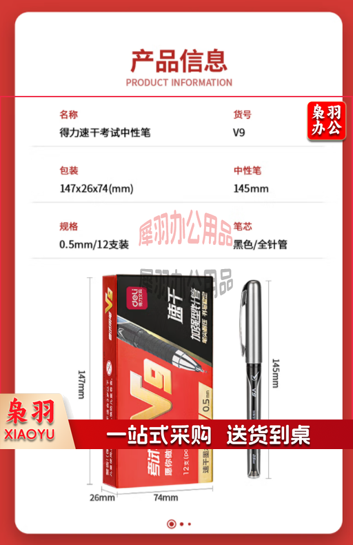 得力V9考试中性笔(黑)(支) 10支起售