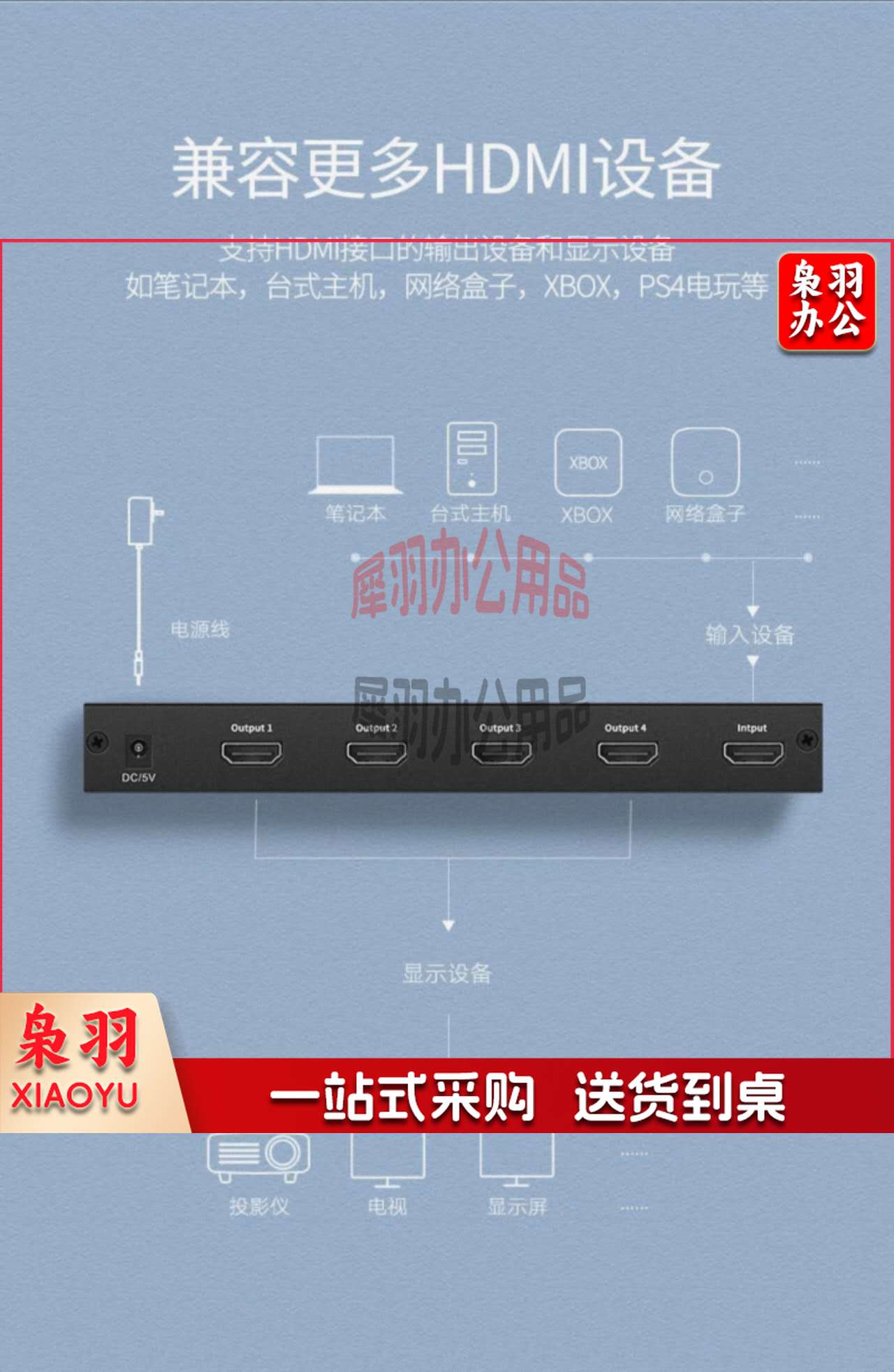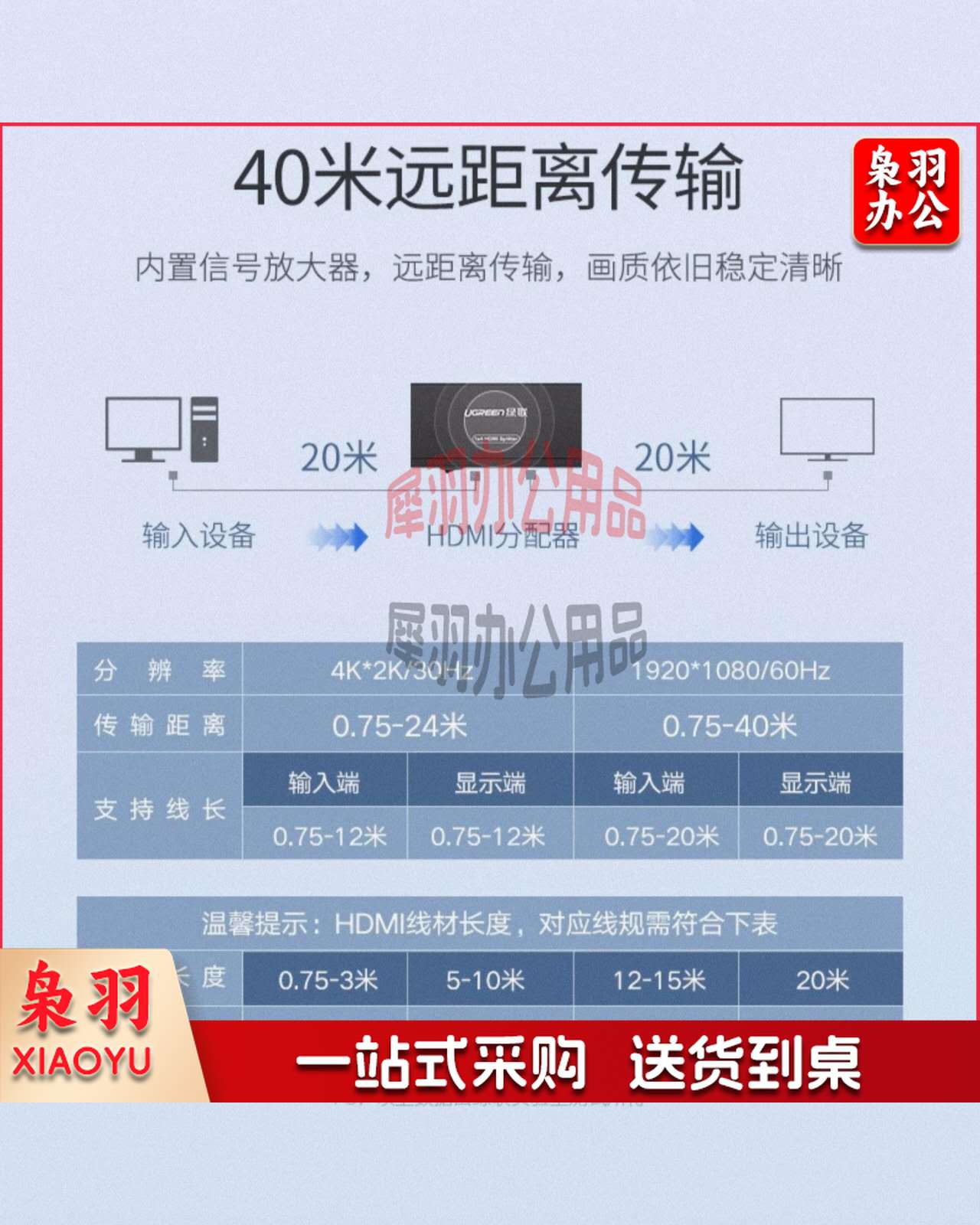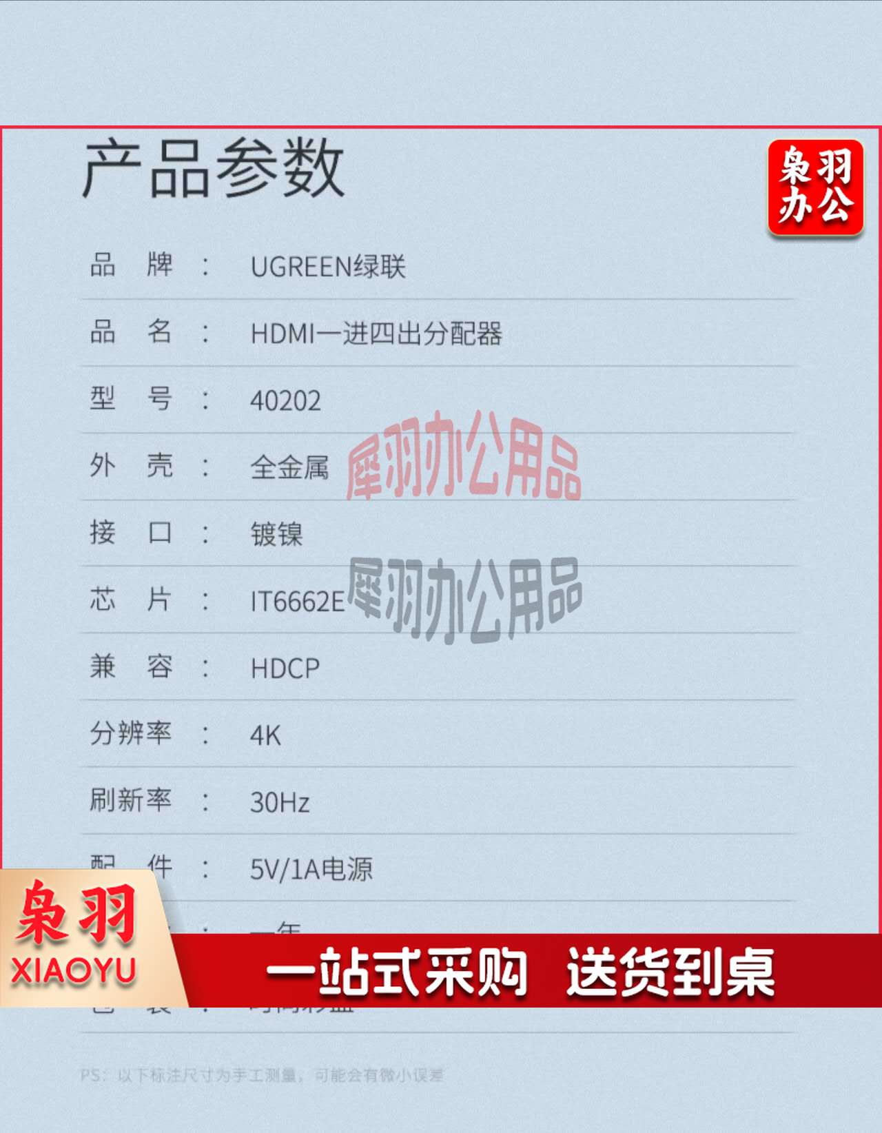 绿联40202 HDMI分配器一分四 一进四出4K数字高清视频分屏器 笔记本电脑电视盒子接显示器投影仪1进4出 一分四