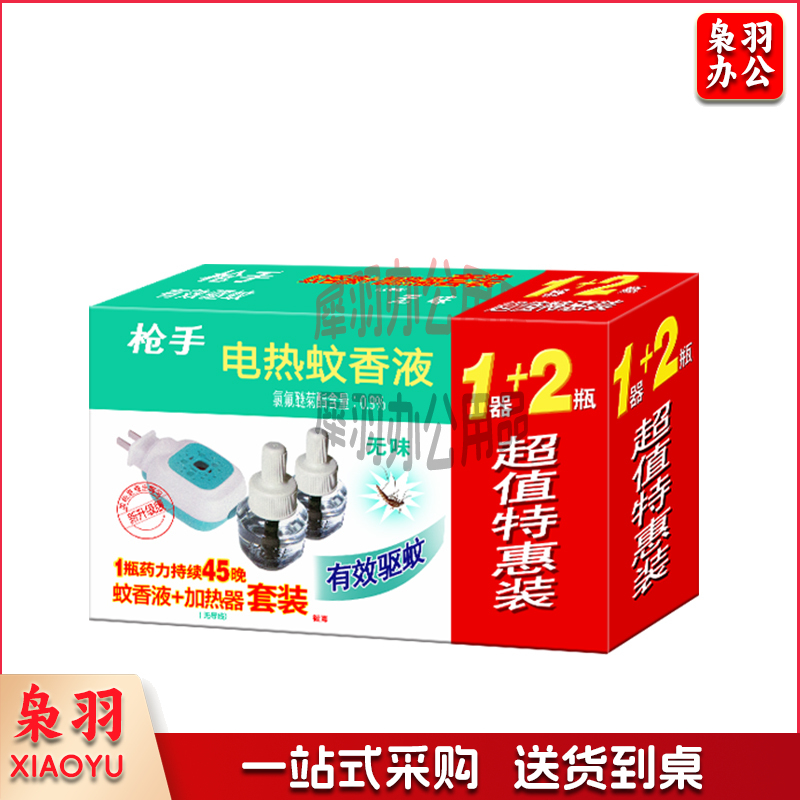 枪手电热蚊香液驱蚊液无味蚊香液套装 (1器+2液)