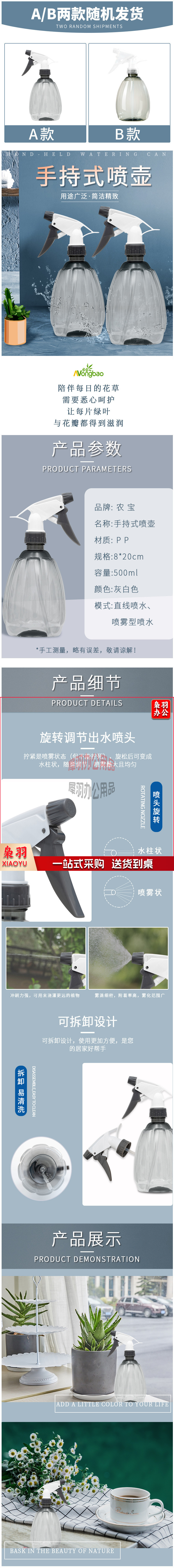 农宝 喷壶 手持式壶 喷水壶 气压式消毒喷壶 酒精小喷壶 500ml