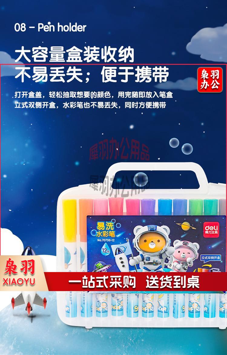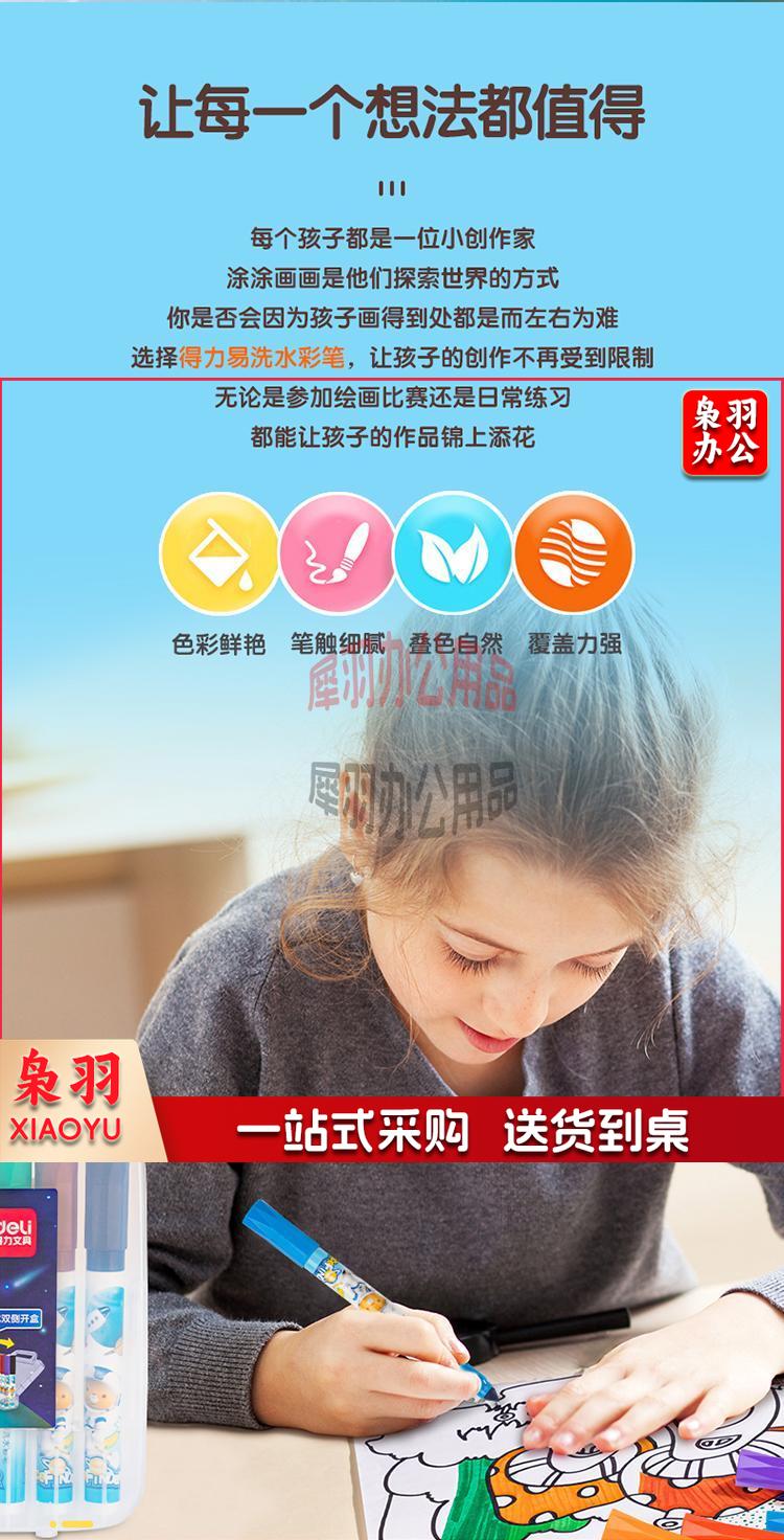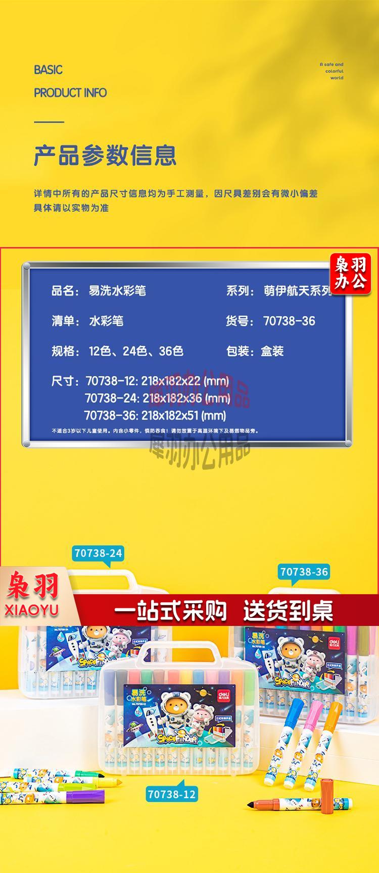 得力(deli)36色儿童水彩笔易水洗 彩绘涂鸦涂色文具幼儿绘画彩笔宝宝画画生日元旦开学礼物70738-36