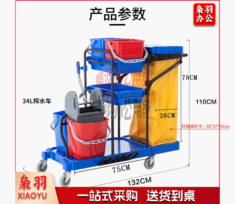 白云清洁 AF08173 清洁手推车酒店宾馆服务车物业保洁车多功能卫生车