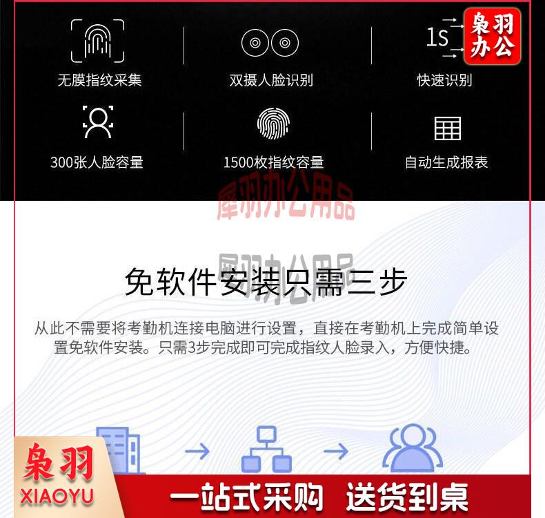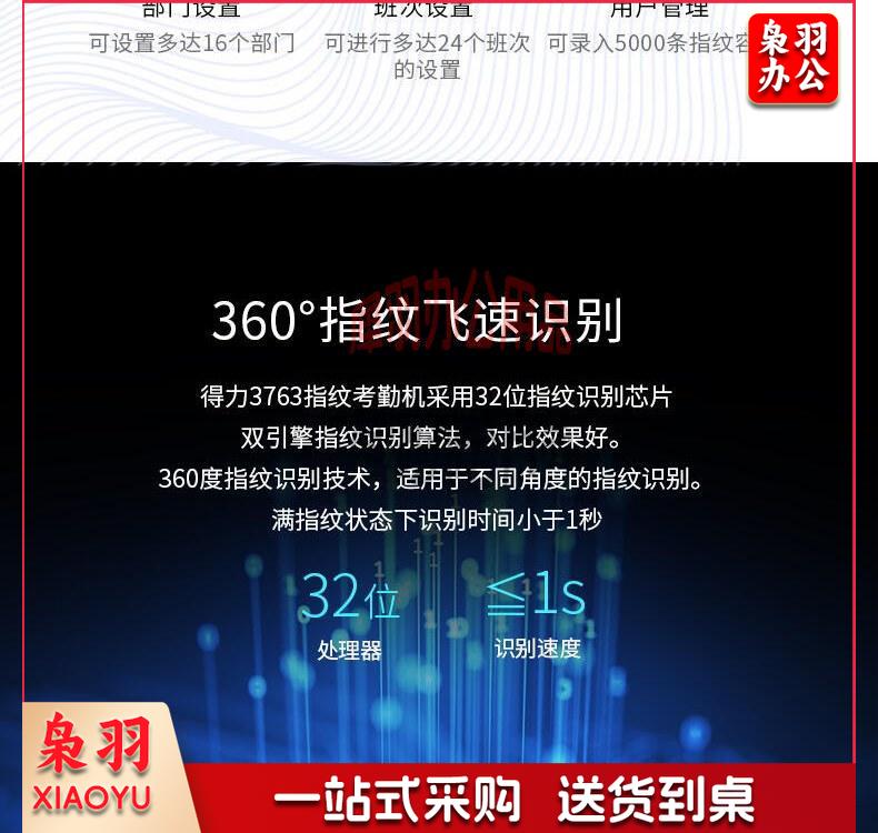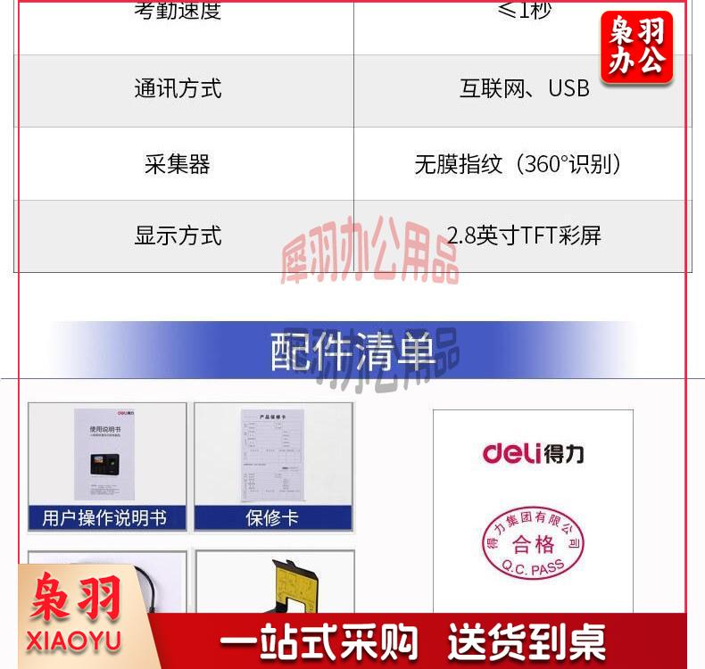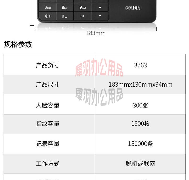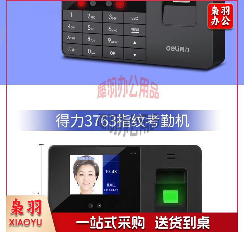 得力(deli) 3763 指纹打卡机 刷脸考勤机 人脸识别 打卡机指纹考勤 300张人脸+1500枚指纹 商用办公