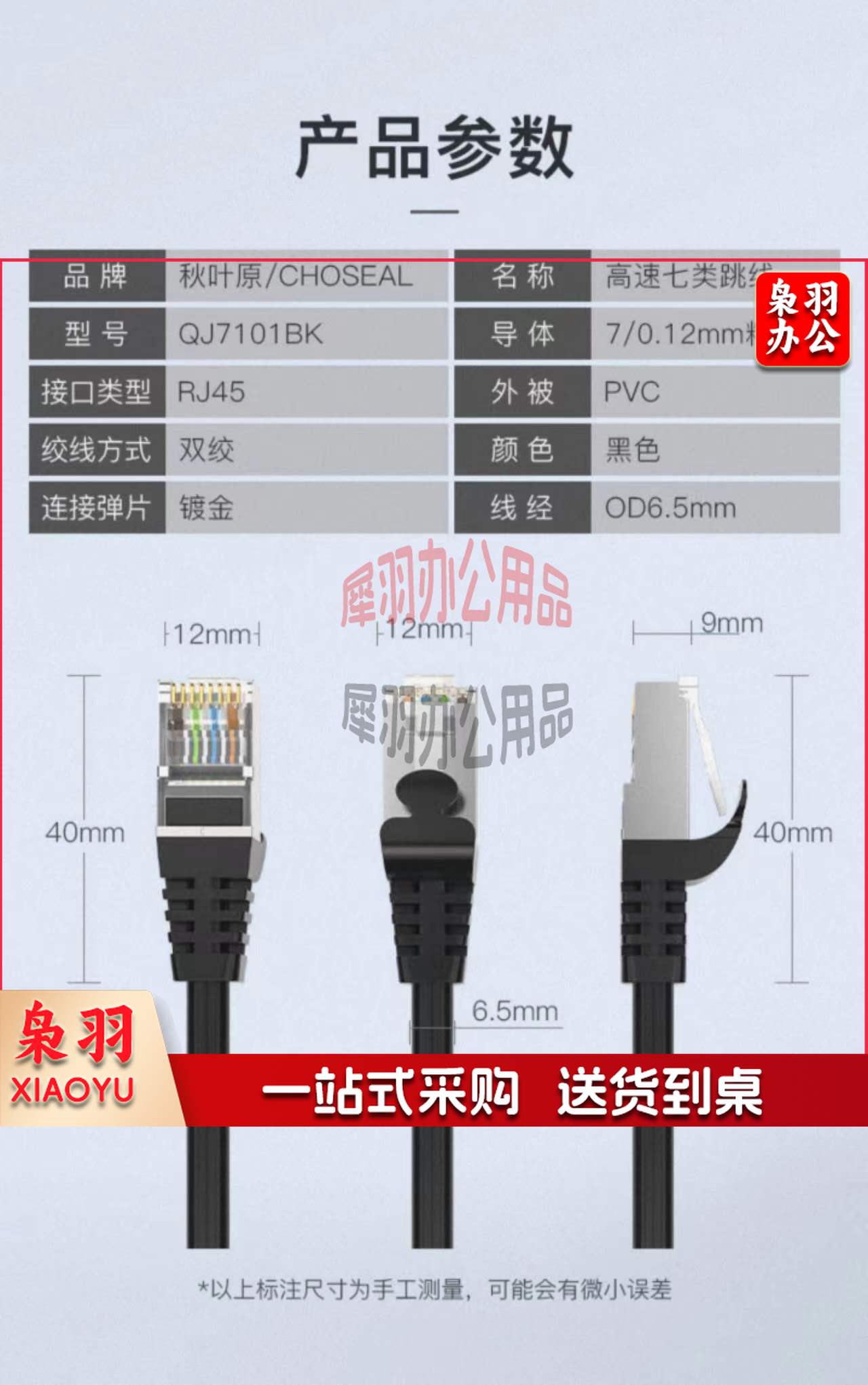 秋叶原(CHOSEAL)2米七类网线 Cat7类纯铜双屏蔽万兆网络连接线 7类宽带电脑游戏监控网络跳线2米 QJ7101BKT2