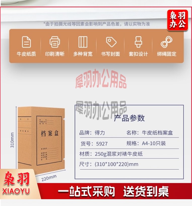 得力5927_250g混浆对裱100mm牛皮纸档案盒(黄) 一个价