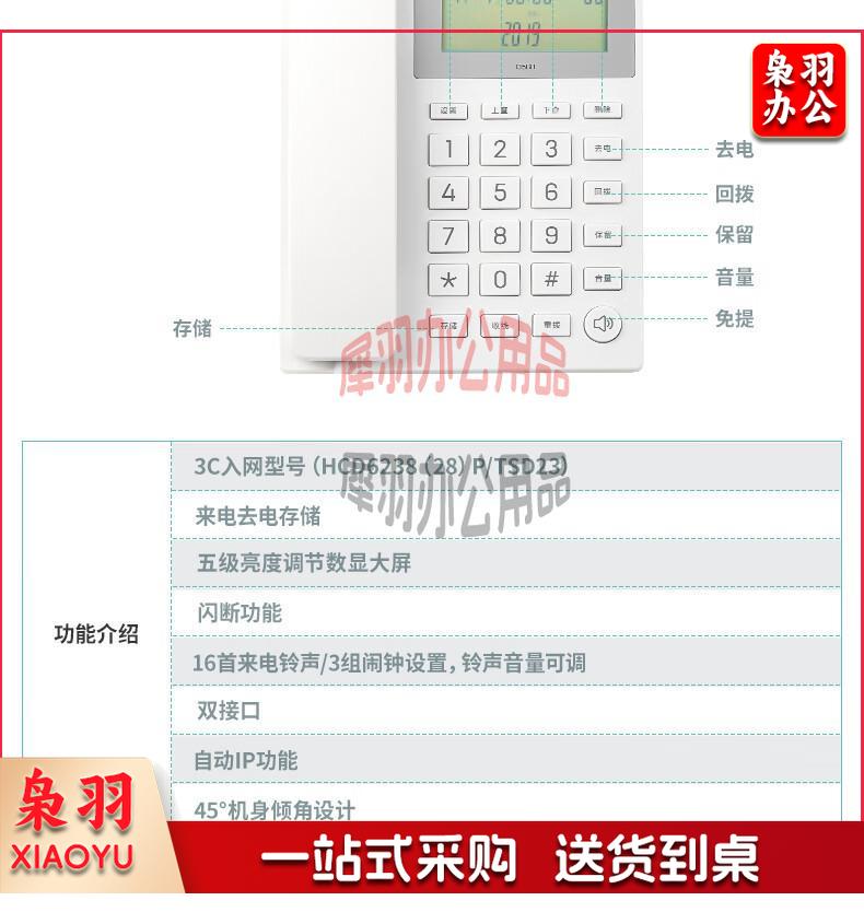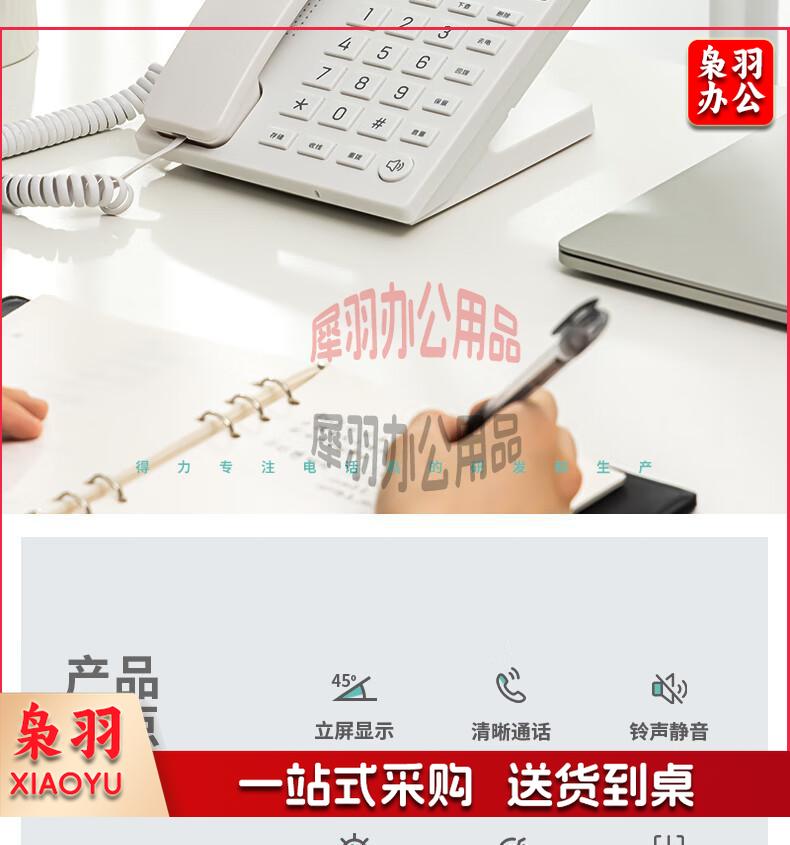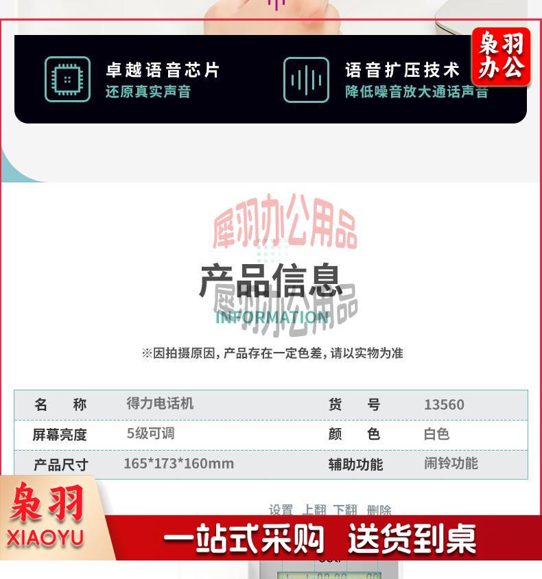 得力(deli) 电话机座机 固定电话 办公家用 45°倾角 亮度可调 13560白 一年质保