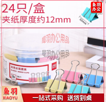 得力8553ES 长尾夹大号多功能夹子小号燕尾夹办公文件票据夹学生试卷资料夹 8553ES混色/24只(32mm)