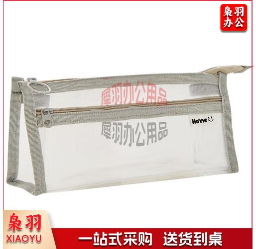 三年二班 透明网纱笔袋大容量男孩女孩学生文具考试专用铅笔盒简约风文具袋铅笔袋 白/灰/绿/紫/粉