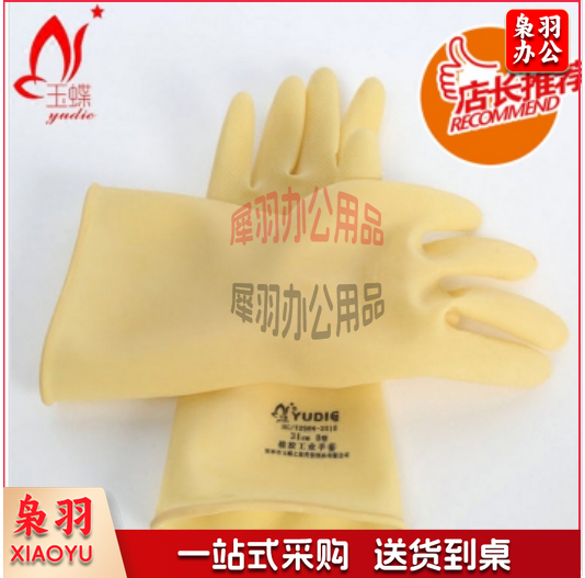 玉蝶(yudie)加厚橡胶无粉工业手套 31CM-60CM 耐酸碱加厚劳保牛筋耐用 中厚型 31cm