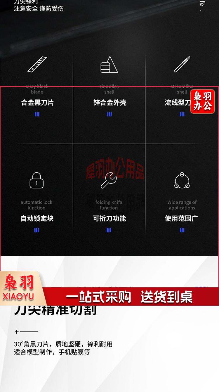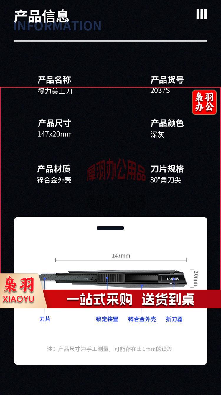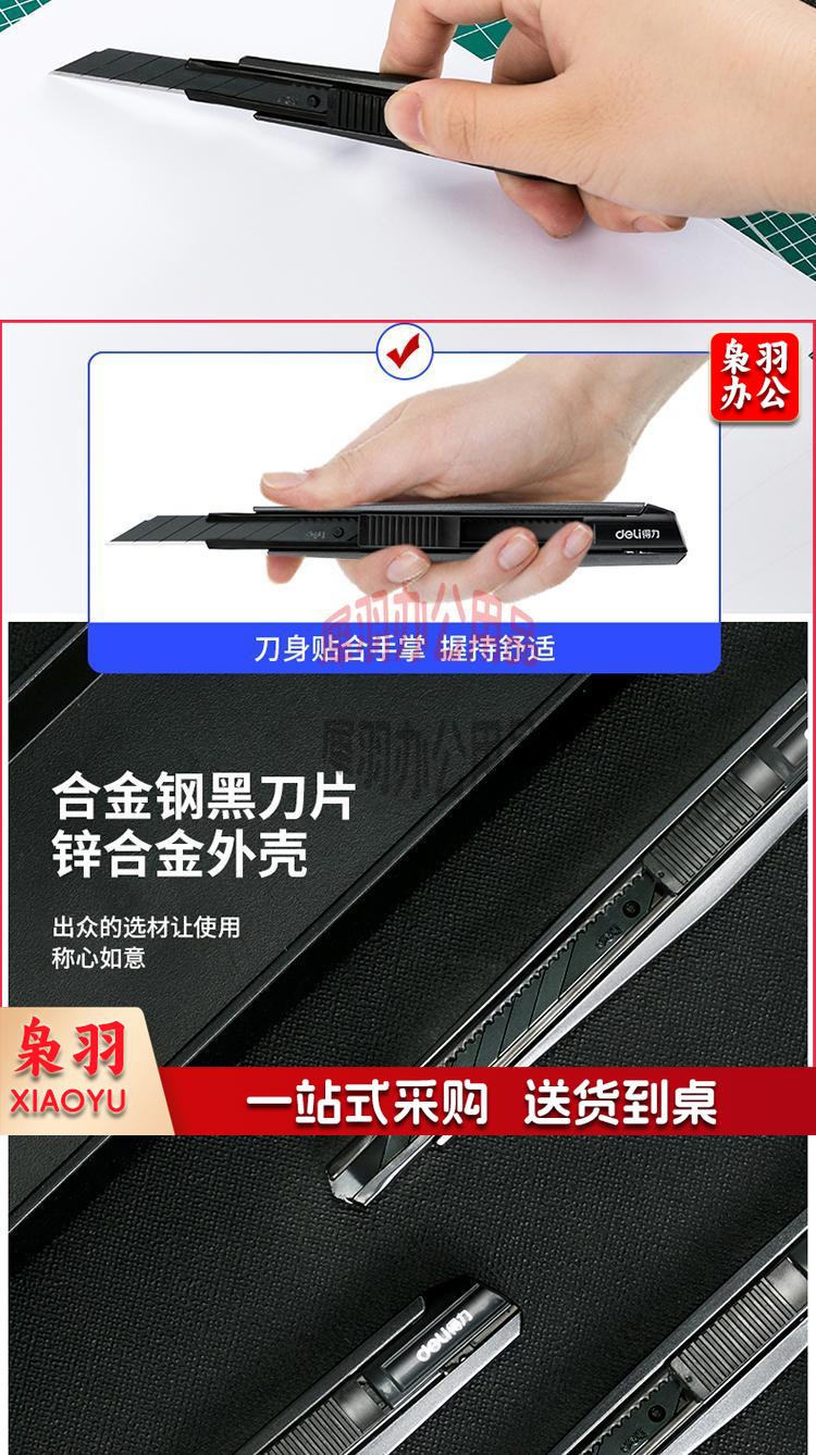 得力(deli)小号30°黑刀刃锌合金美工刀/裁纸刀/壁纸刀 2037S