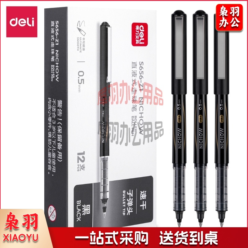 得力签字笔 S656-Z1直液式走珠笔 0.5mm子弹头(黑色)(支)