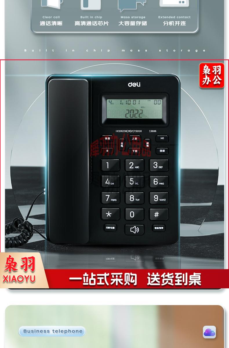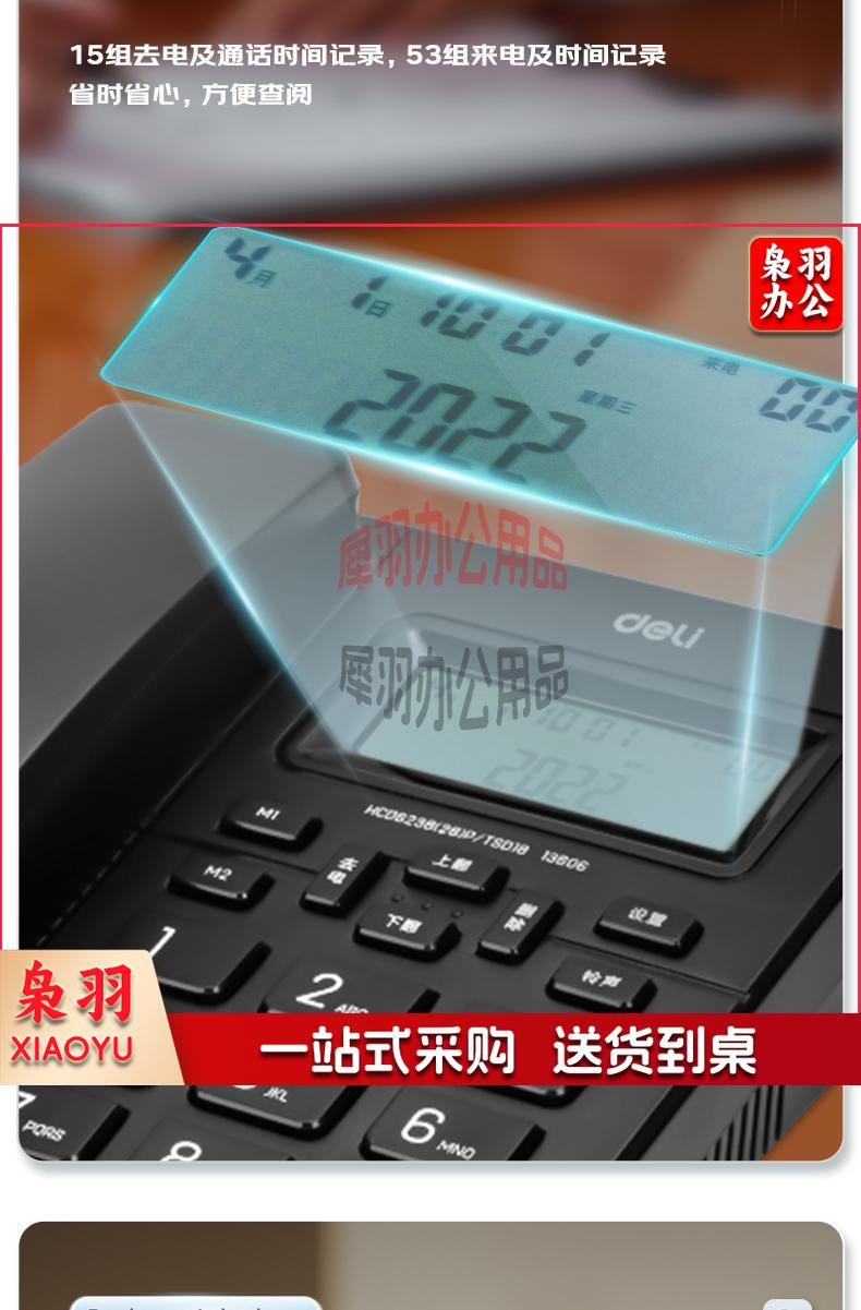 得力(deli)电话机座机 固定电话 办公家用 来去电查询 可接分机 13606黑 一年质保
