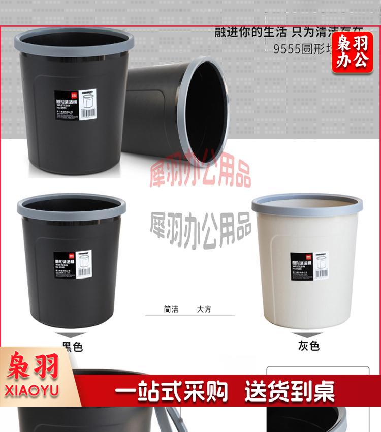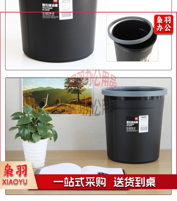得力(deli)9.5L加厚带压圈垃圾桶 厨房家用清洁桶 垃圾分类 办公纸篓 黑色9555