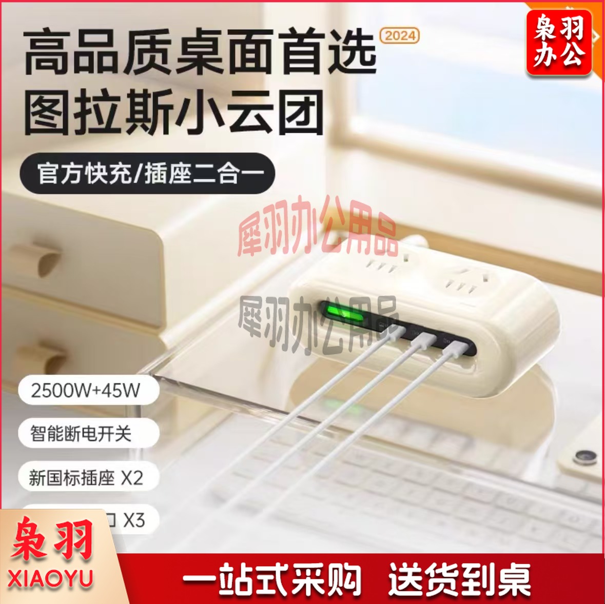 图拉斯Yoga快充插座 2500W+45W USB-C接口*3 插座*2 奶油黄