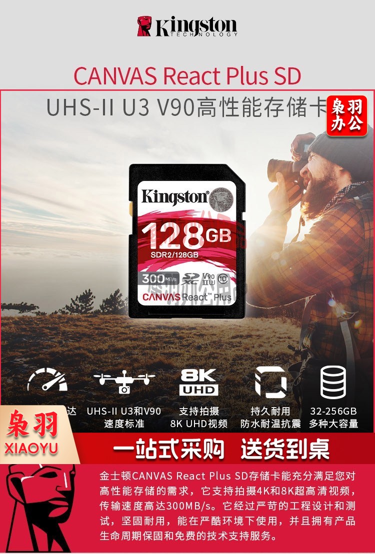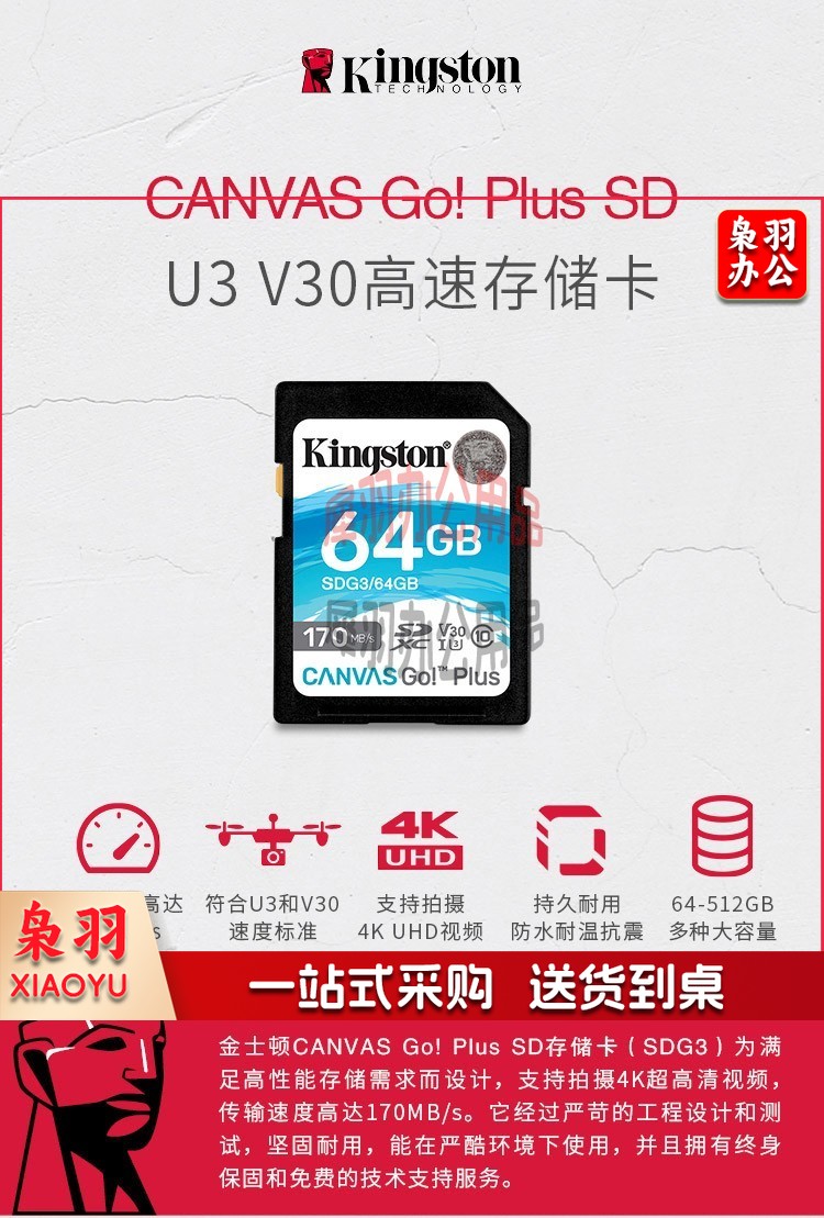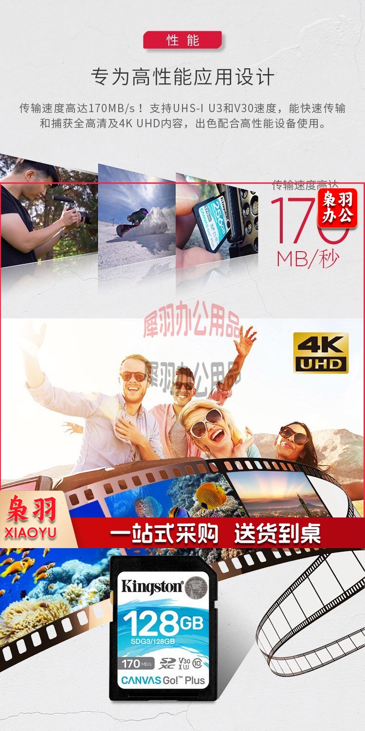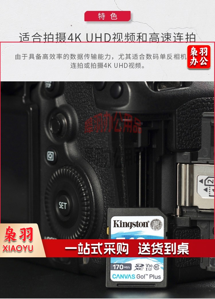 金士顿(Kingston)SD存储卡 U3 V30 4K高速相机单反微单内存卡 class10 SDG3/256G【读速170M/S 丨4K超清】
