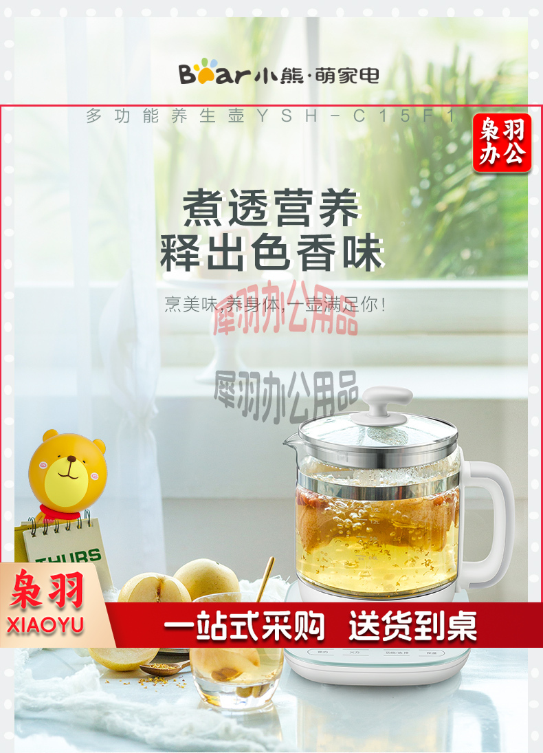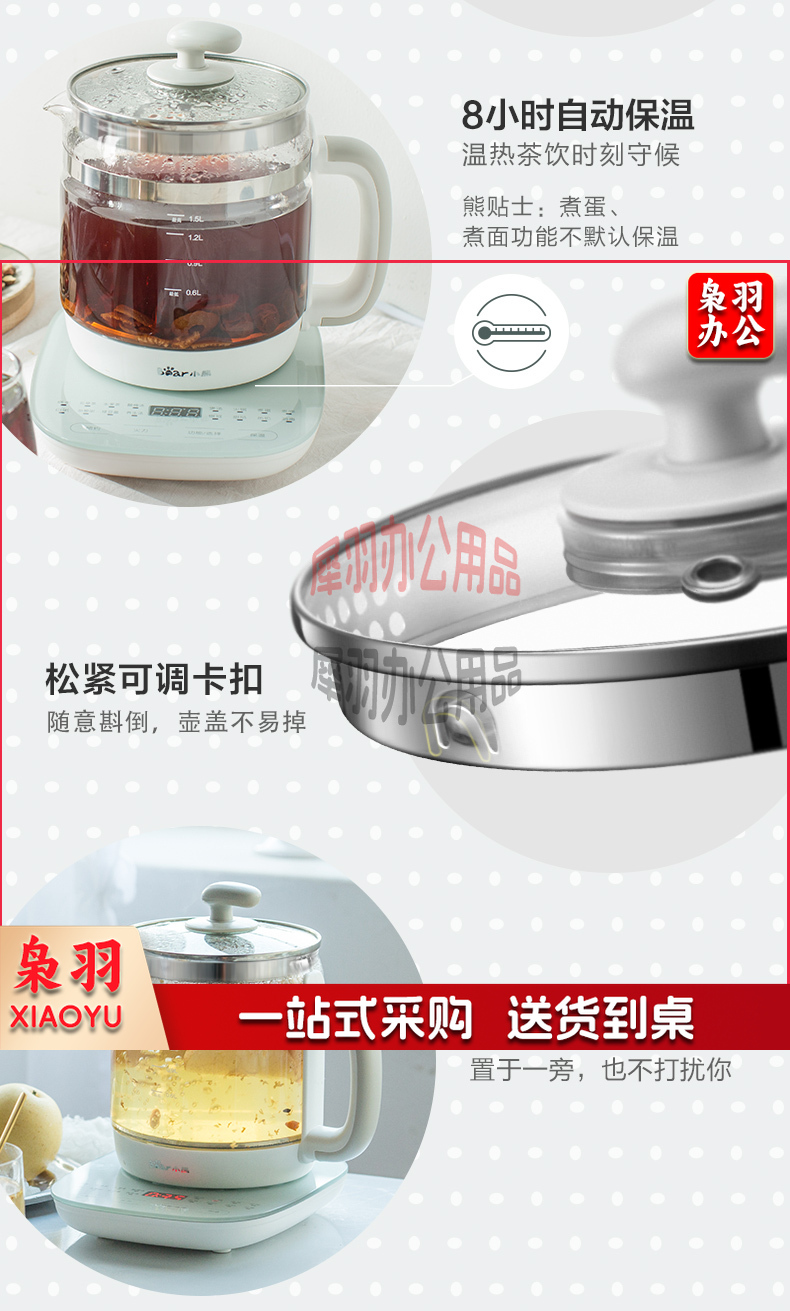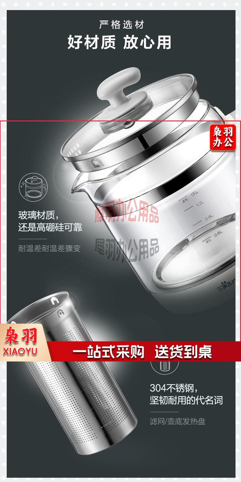 小熊(Bear) 电水壶烧水壶多功能煮茶器玻璃花茶壶 智能保温1.5L