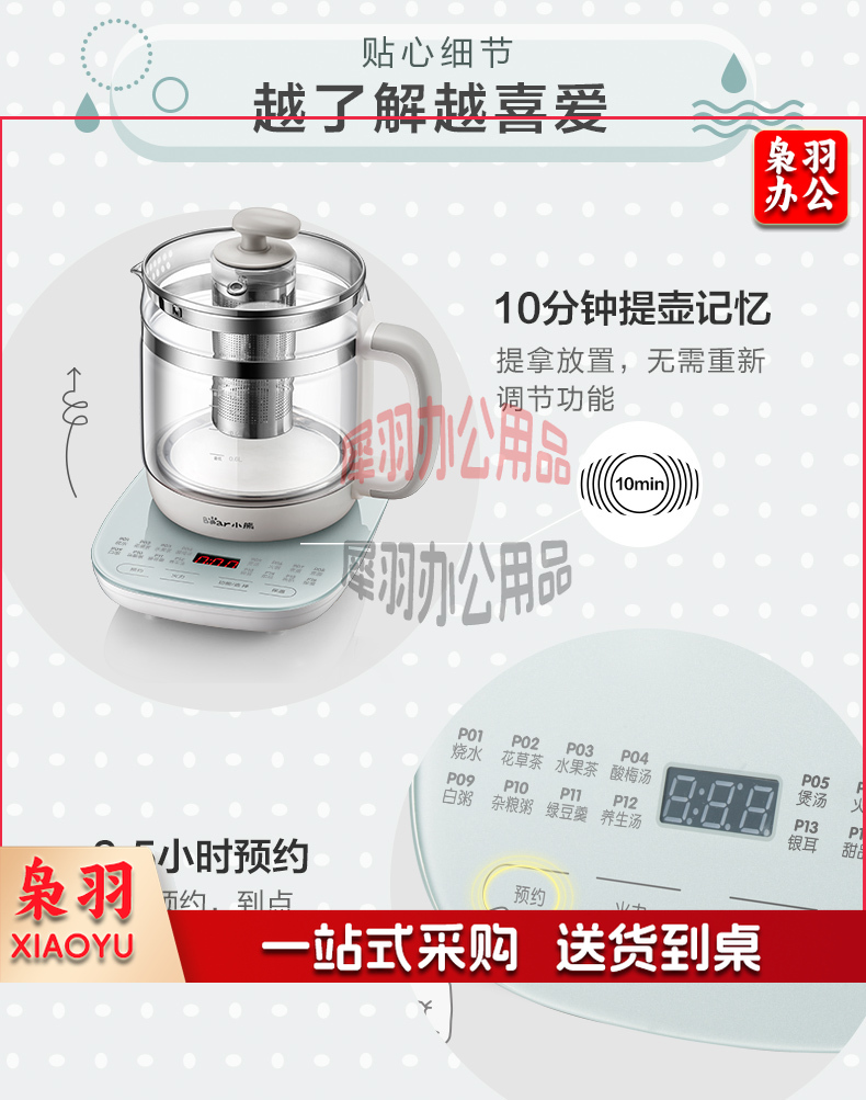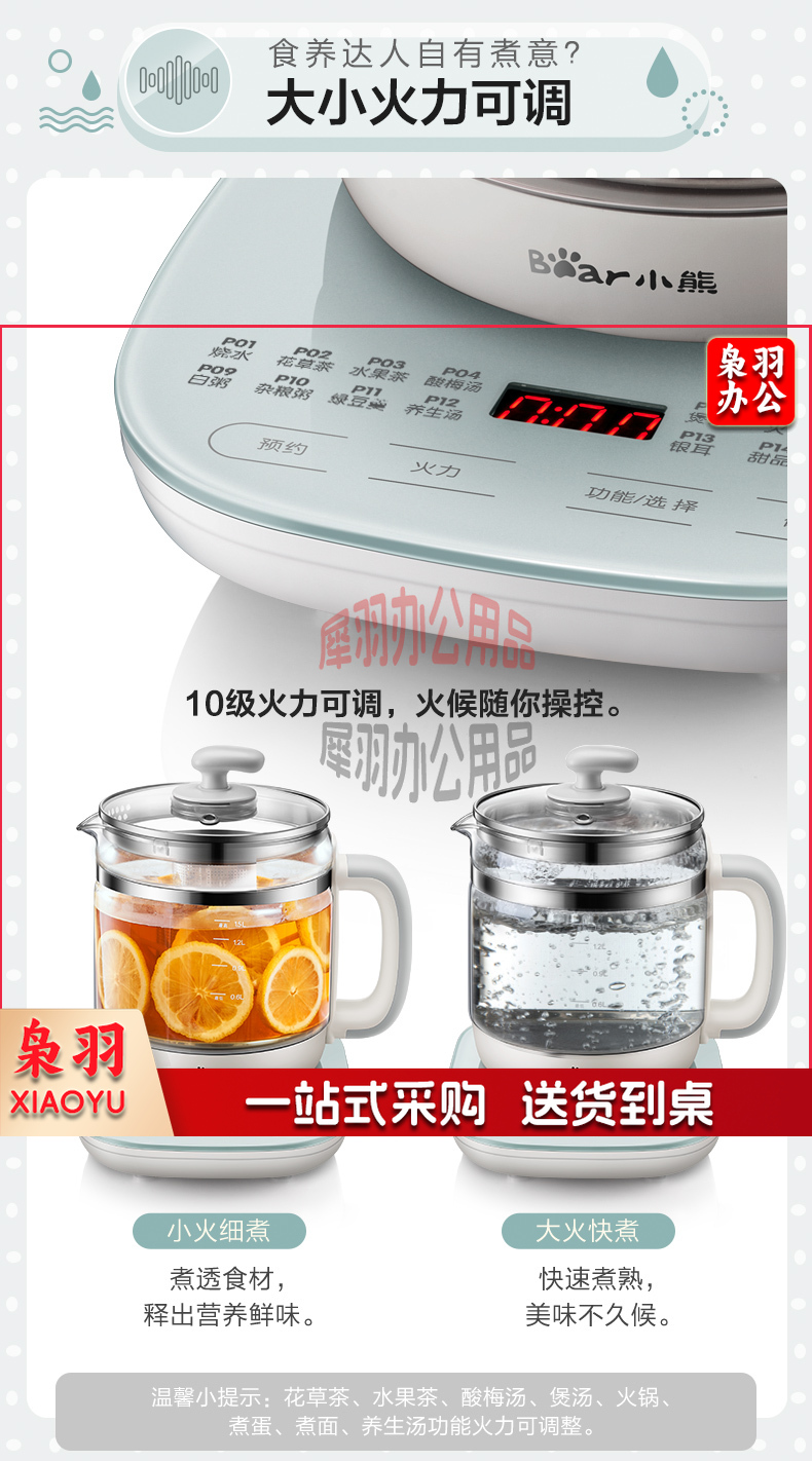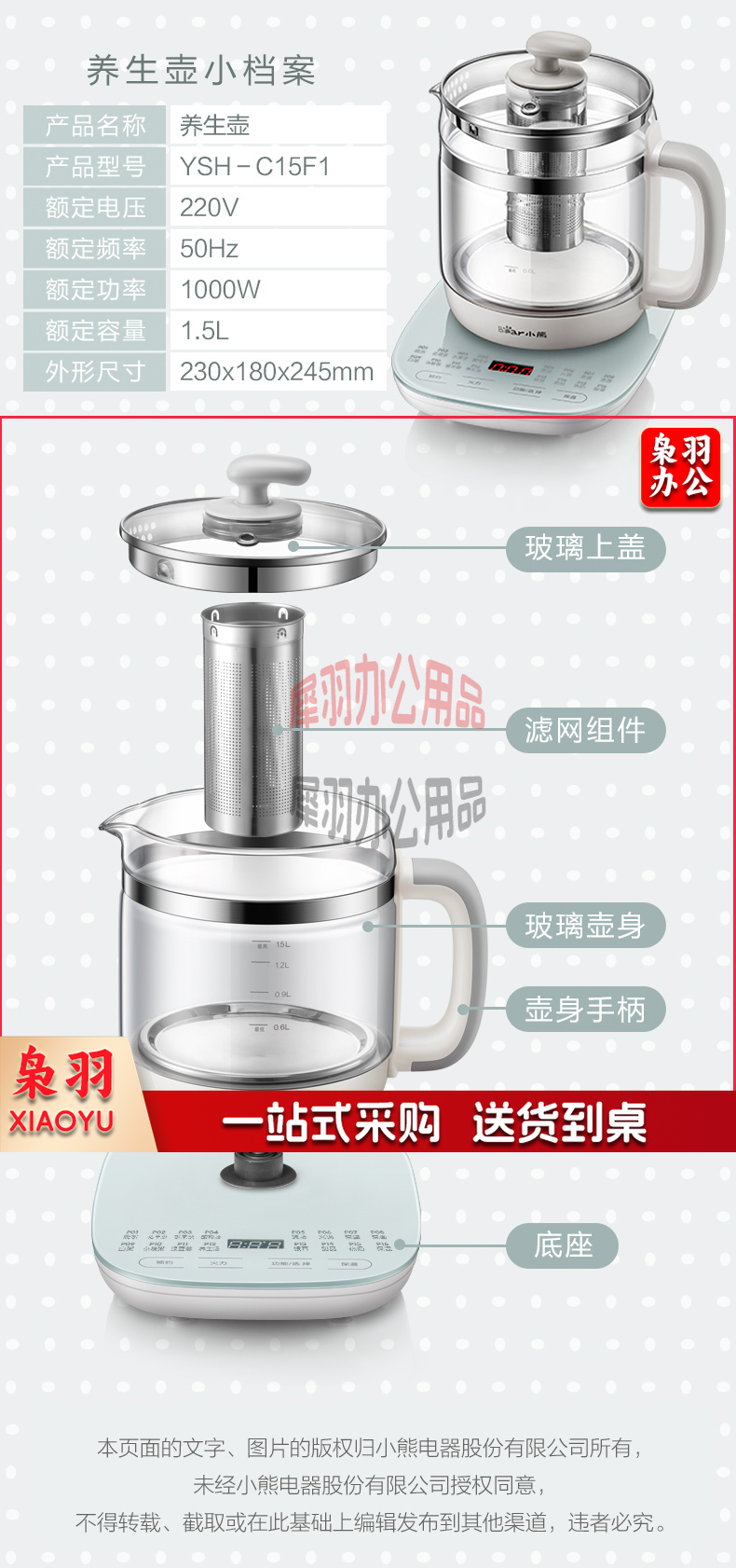 小熊(Bear) 电水壶烧水壶多功能煮茶器玻璃花茶壶 智能保温1.5L