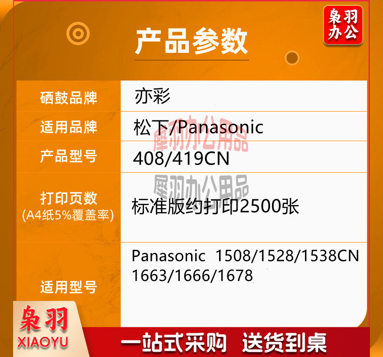 亦彩 激光打印机硒鼓 松下408/419CN适用于 Panasonic1508/1528/1538 等激光打印机