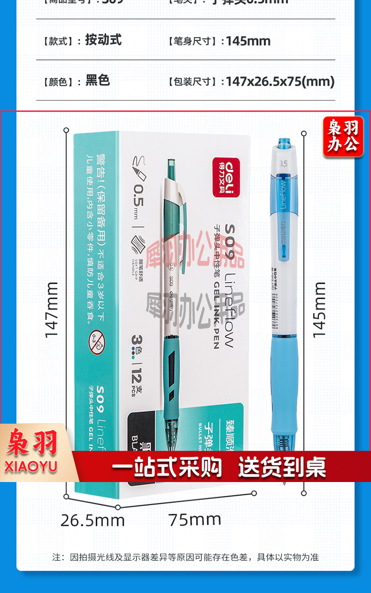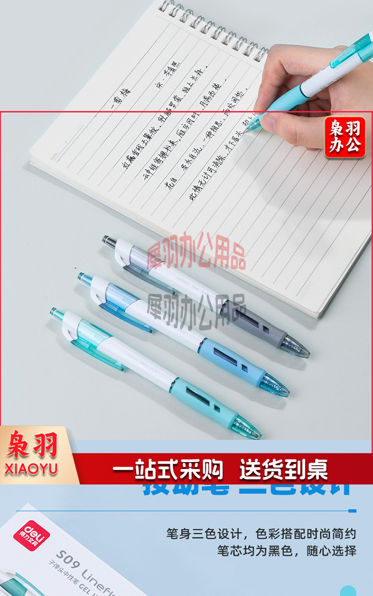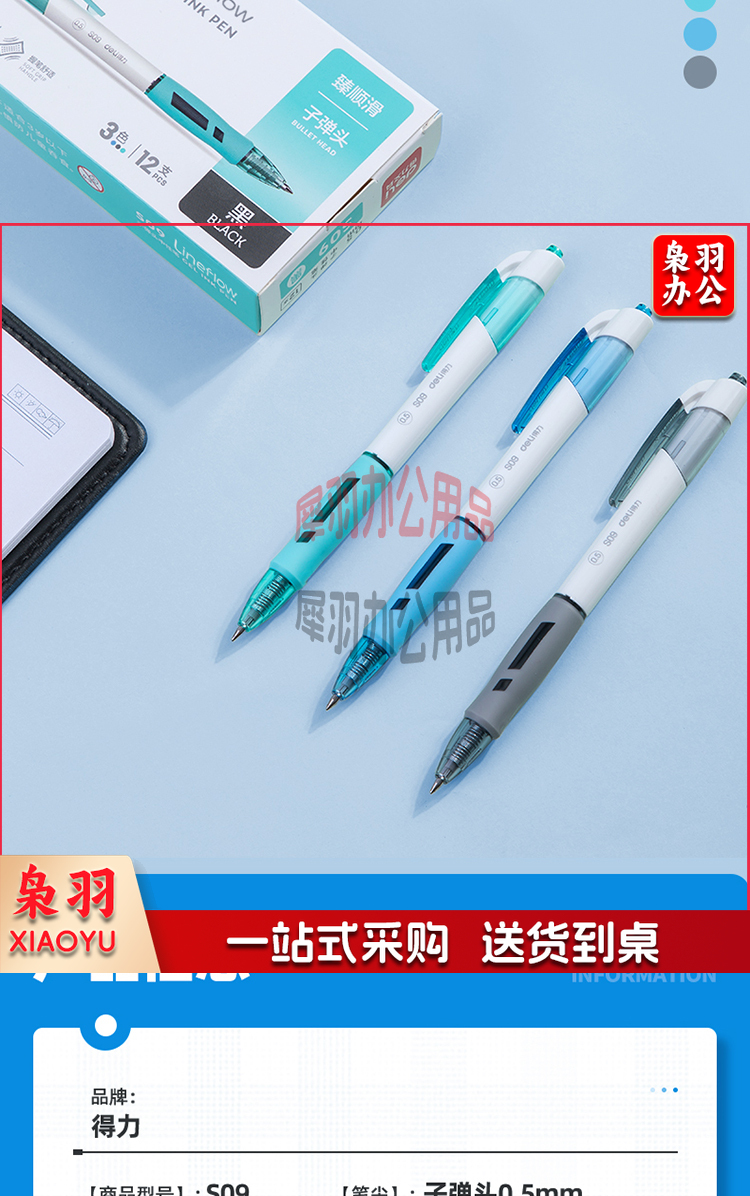得力 deli S09 盒装 臻顺滑 中性笔签字笔 子弹头按动笔水笔 0.5mm 12支/盒 单位:盒 黑色