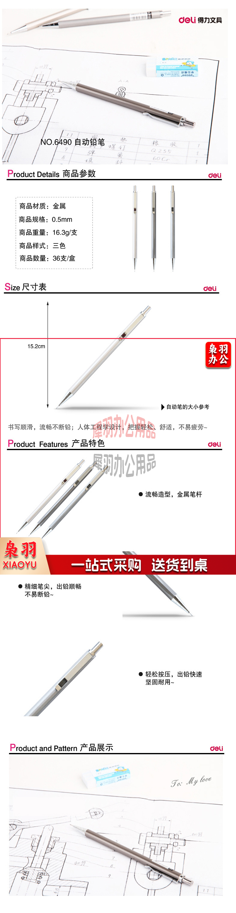 得力 6490 活动铅笔自动铅笔 0.5mm 36支/盒 (单位:支) 混色
