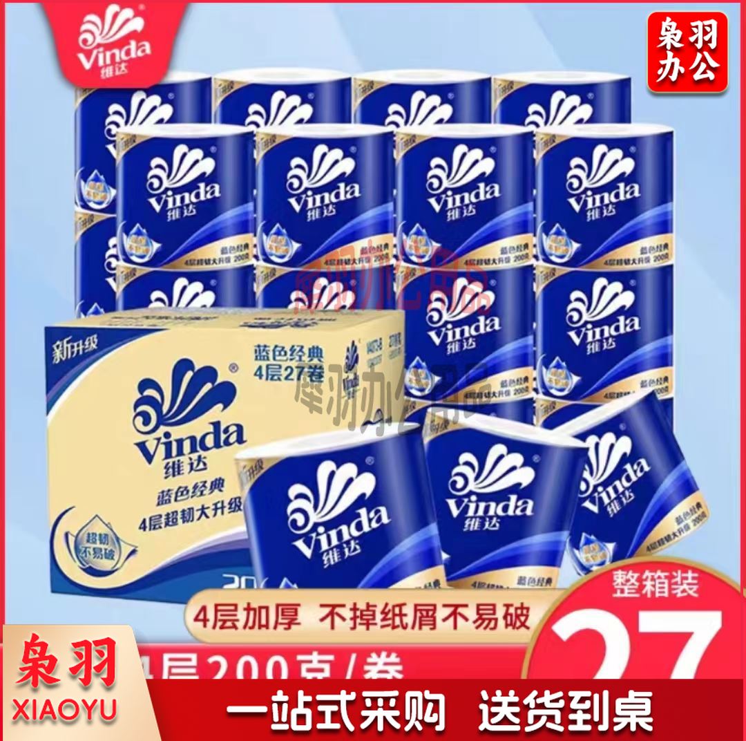 维达卷纸 蓝色经典200克27卷 4层加厚 卫生纸卷筒纸 纸巾 卷纸 整箱