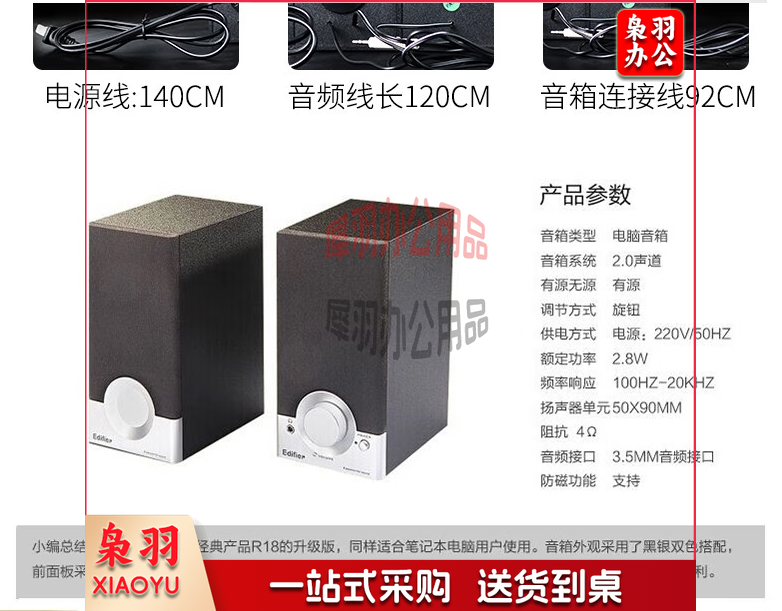 漫步者(EDIFIER) R18T 2.0声道 木质多媒体音响音箱 电脑音响 黑色
