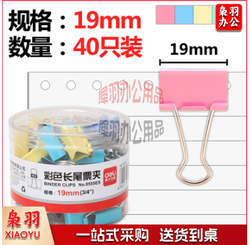 得力(deli)8555ES彩色长尾票夹筒装(混)(40只/筒)