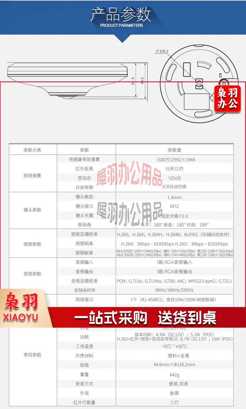 dahua大华高清500万红外鱼眼型网络摄像机全景摄像头支持外接音频插卡网络摄像机 500万鱼眼半球