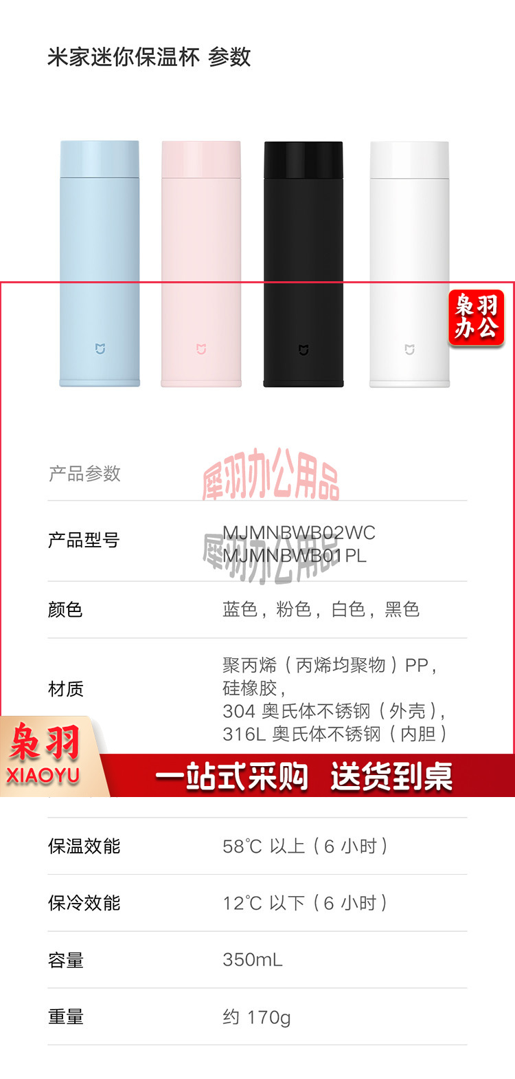 米家迷你保温杯350mL mini保温杯长效保温保冷水具健身运动水杯黑色