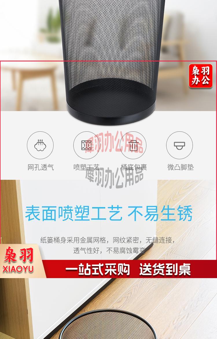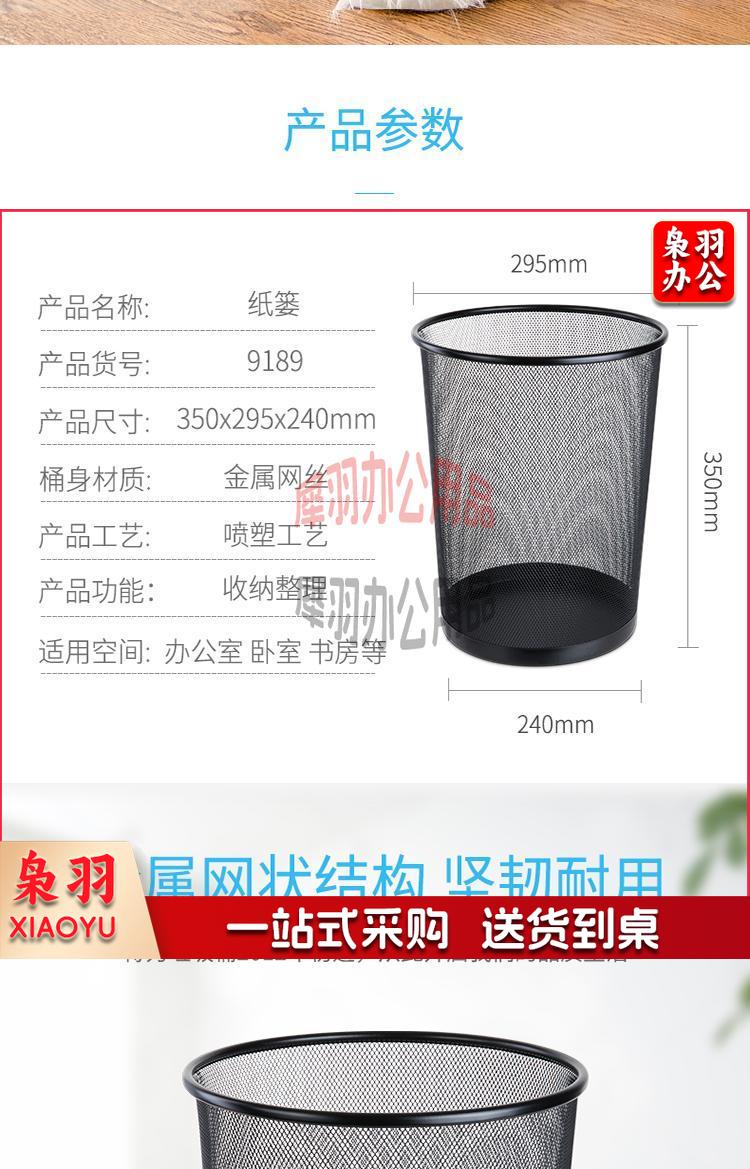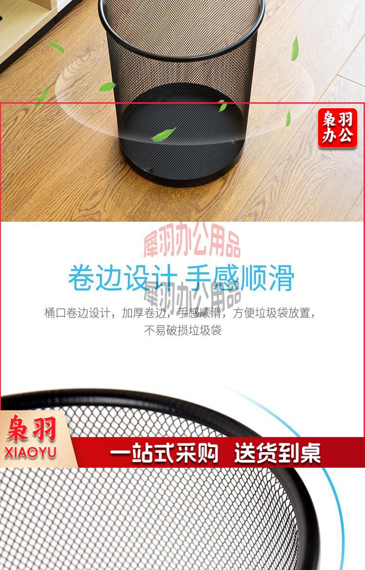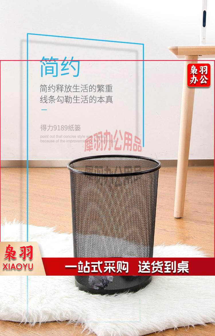 得力(deli)φ29.5cm大号金属网状垃圾桶 厨房卫生间家用清洁桶 办公垃圾纸篓 黑色9189
