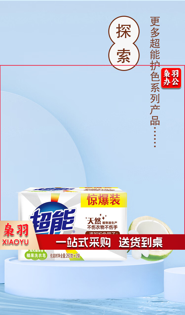 超能 椰果洗衣皂(植物焕彩)260g*2块 护色因子 (新老包装随机发货)