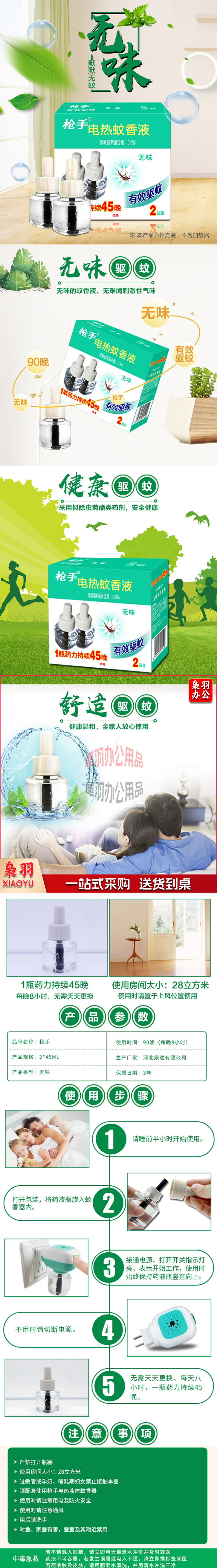 枪手无味45ml 电热蚊香液 2瓶装 补充装90晚 无香型 驱蚊液 电蚊香