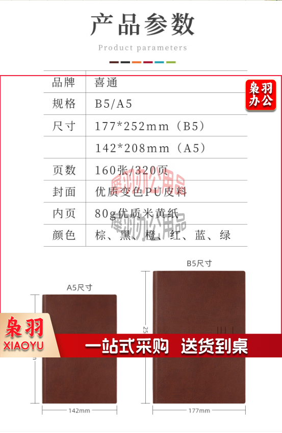 喜通(heeton) A5中本加厚软皮笔记本本子 130张简约考研记事本办公用品文具 果绿色