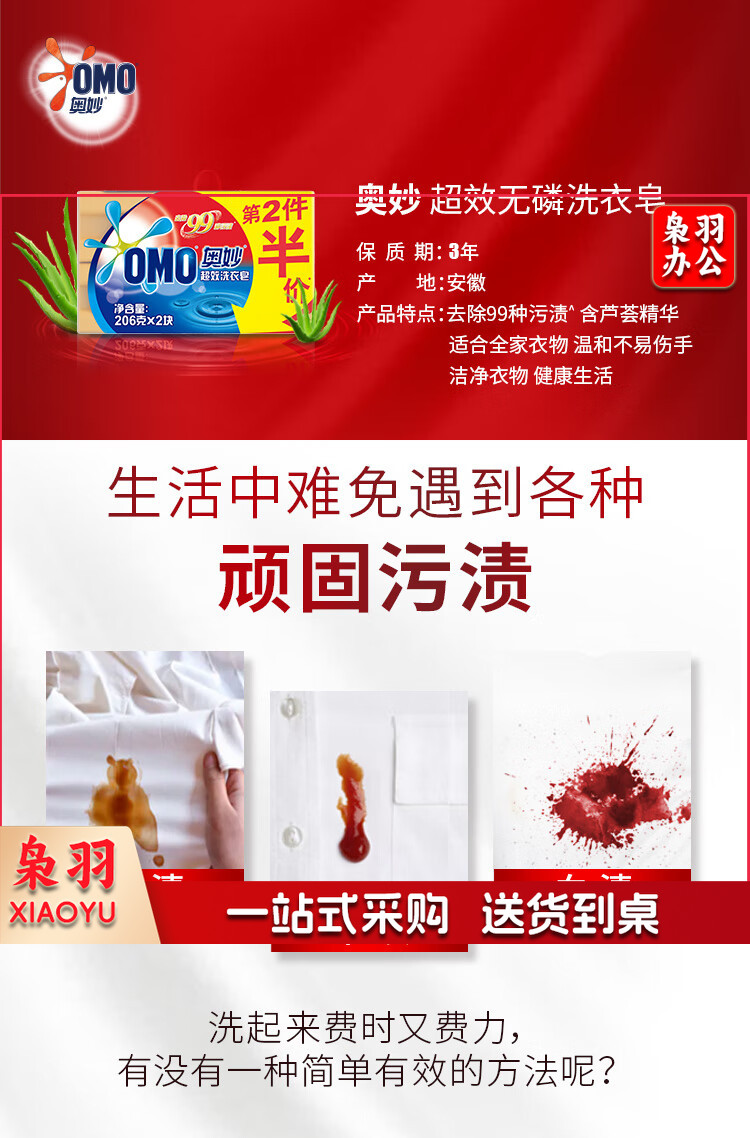 奥妙(OMO) 内衣皂透明皂温和清洁去污渍温和不伤手 去污渍洗衣皂206g*2
